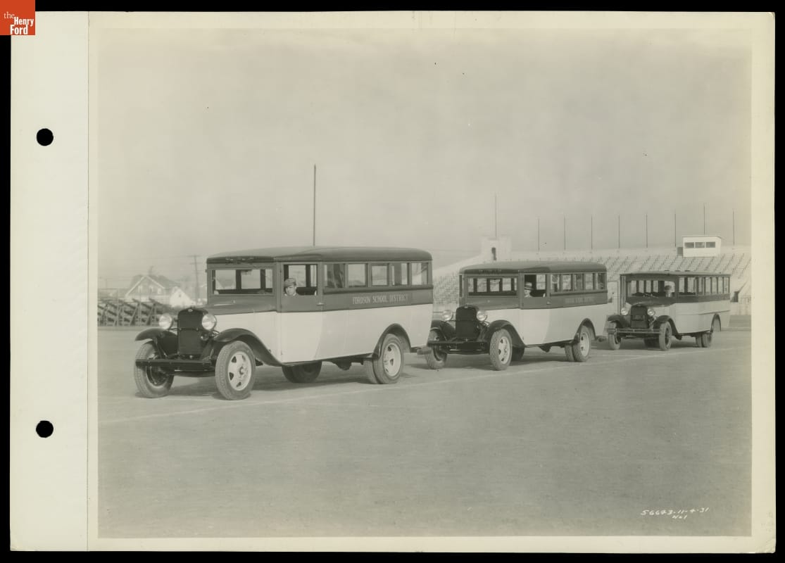 Ford Motor Company expanded its commercial lines to combat sagging Depression-era sales, offering an array of body types for its truck chassis -- from police patrols and ambulances to garbage trucks and school buses. These 1932 buses transported students of the Fordson School District in what is now Dearborn, Michigan.