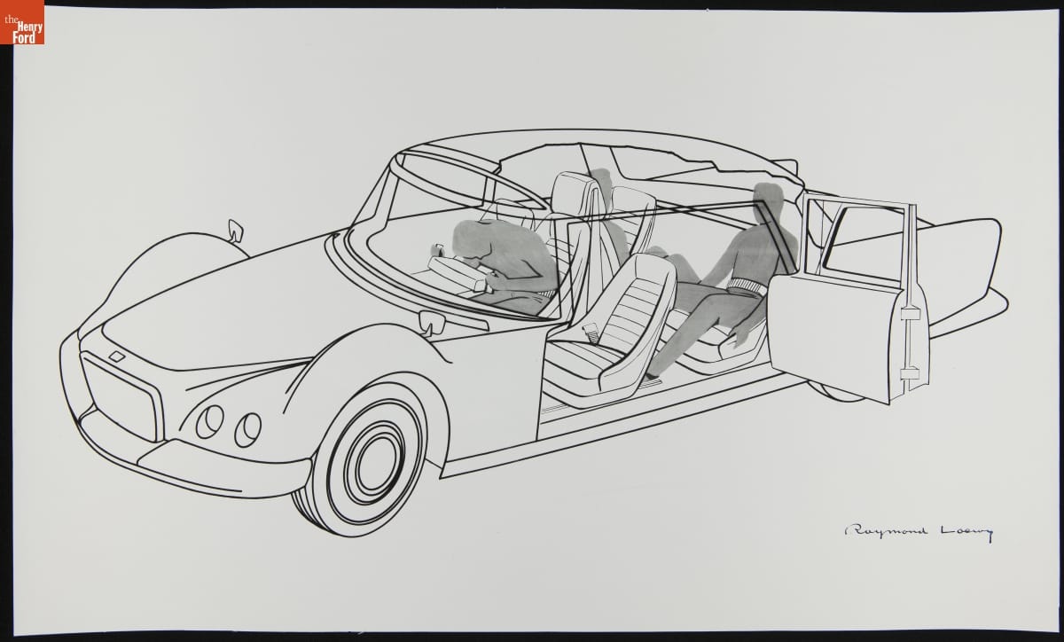 Industrial designer Raymond Loewy produced a series of design drawings for the "Safety Car" built in 1957 by Cornell University and the Liberty Mutual Insurance Company. The finished concept car incorporated more than 60 safety improvements from seat belts, to padded interior surfaces, to accordion-style folding doors.