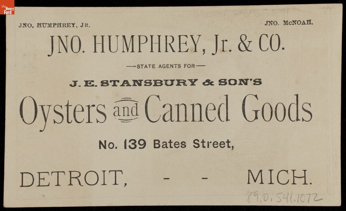 Trade Card for Pioneer Brand Oysters, James E. Stansbury & Sons, circa 1875