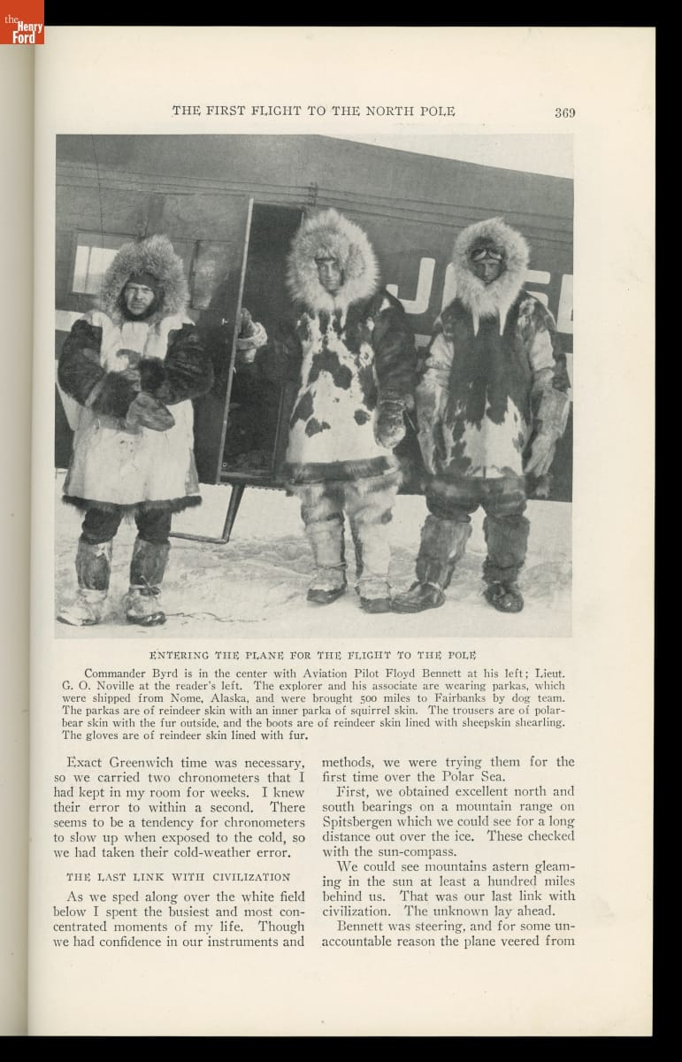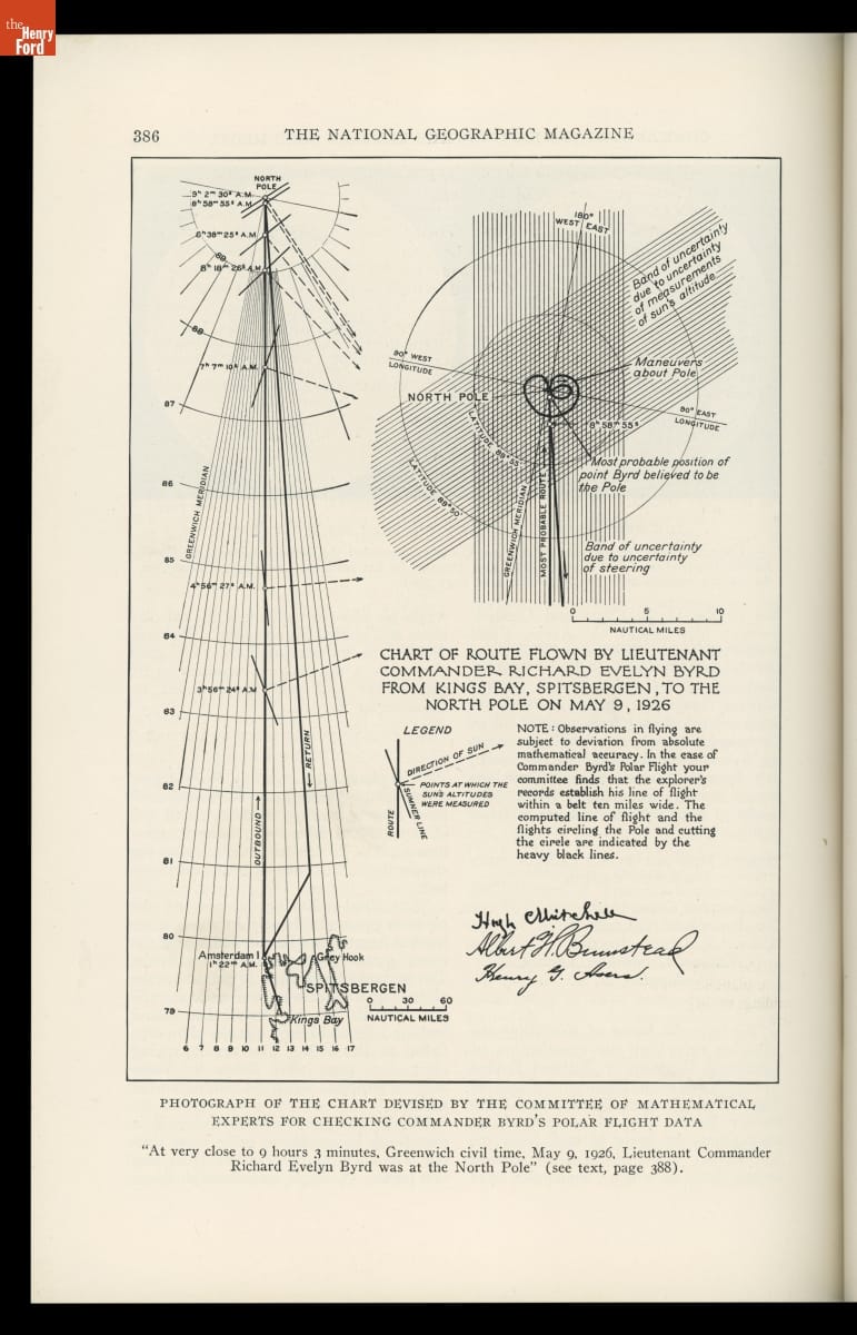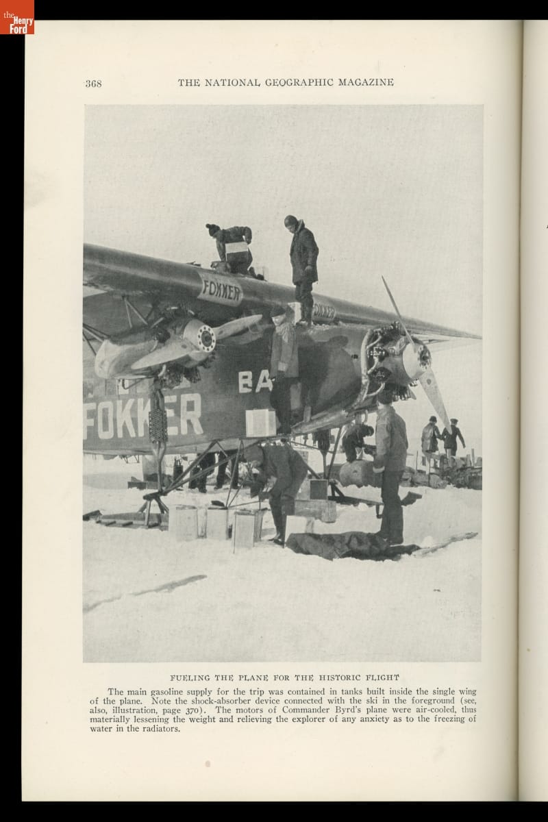 On May 9, 1926, explorer Richard Byrd and pilot Floyd Bennett took off from Spitzbergen, Norway, on a round-trip flight toward the North Pole in the Fokker Tri-Motor Josephine Ford. Byrd recounted their journey in the September 1926 issue of National Geographic. Though Byrd is generally credited with success, controversy remains over whether he and Bennett reached the actual pole.
