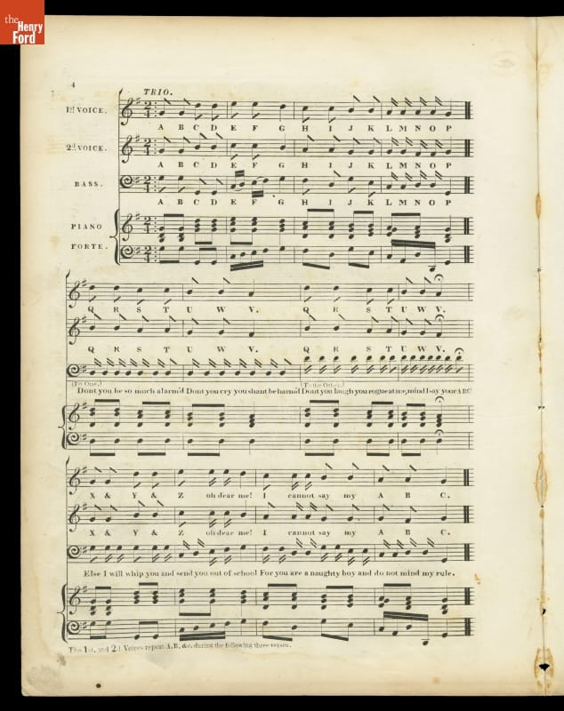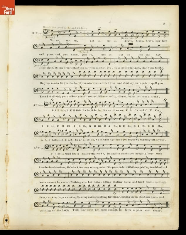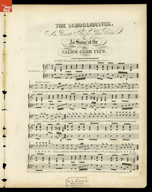 Music Sheet, "The Schoolmaster, a Very Popular Glee," 1834