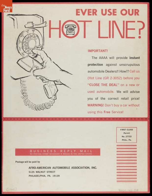 Made for the Afro-American Automobile Association of Philadelphia, Pennsylvania