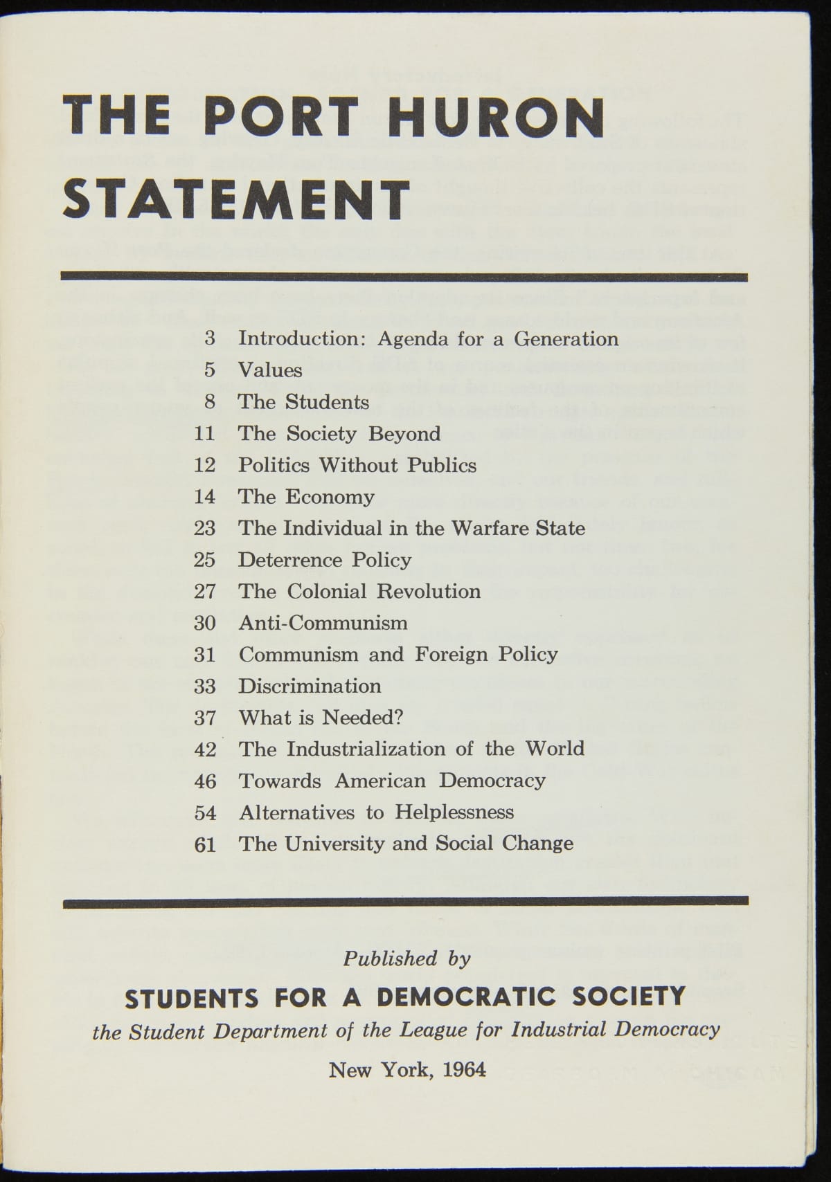 The Port Huron Statement, 1964