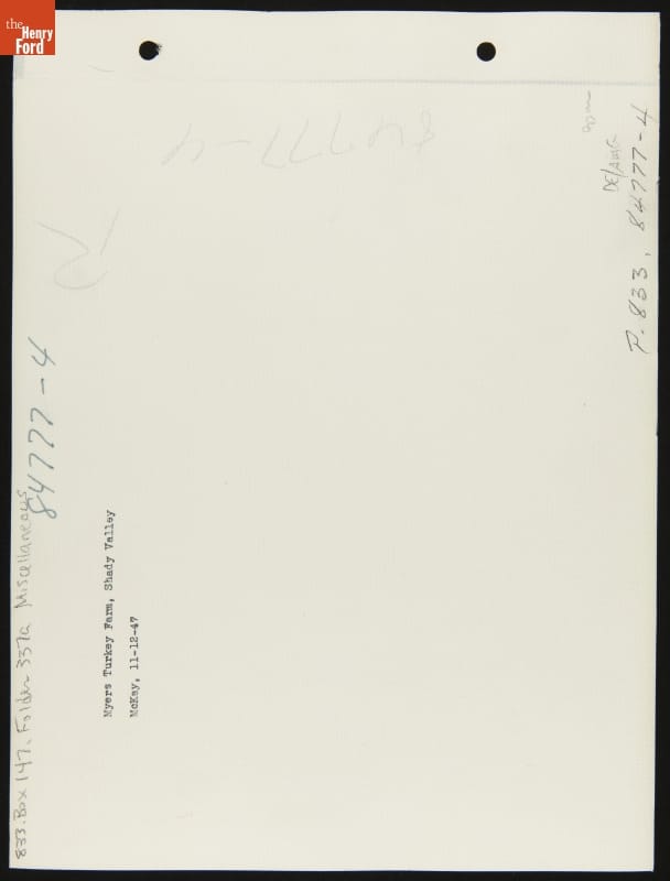 Myers Turkey Farm, Shady Valley, 12 November 1947