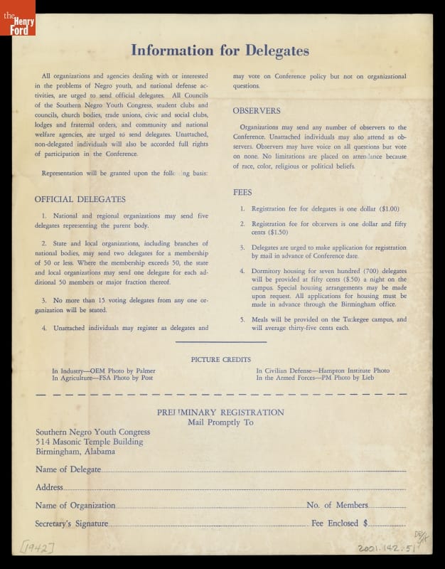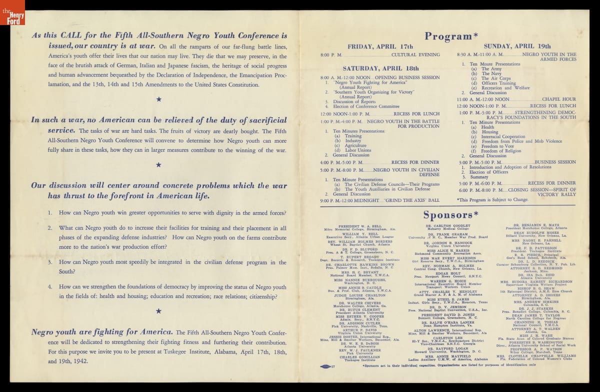 Program for the 5th All -Southern Negro Youth Conference, "Negro Youth Fighting for America," 1942