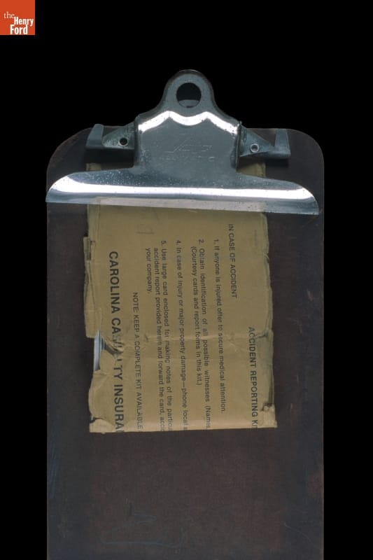 This clipboard was used in the 1950s by a driver for the Montgomery (Alabama) City Bus Lines. While riding a Montgomery bus - on exhibit in the Henry Ford Museum - in 1955, Rosa Parks refused to give up her seat to a white man, leading to a widespread bus boycott by African Americans.