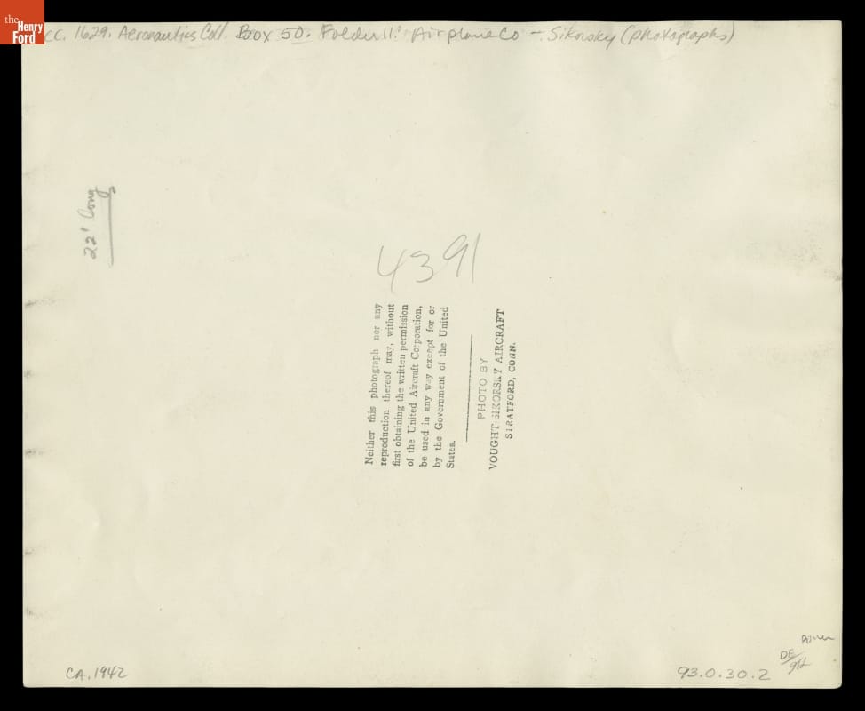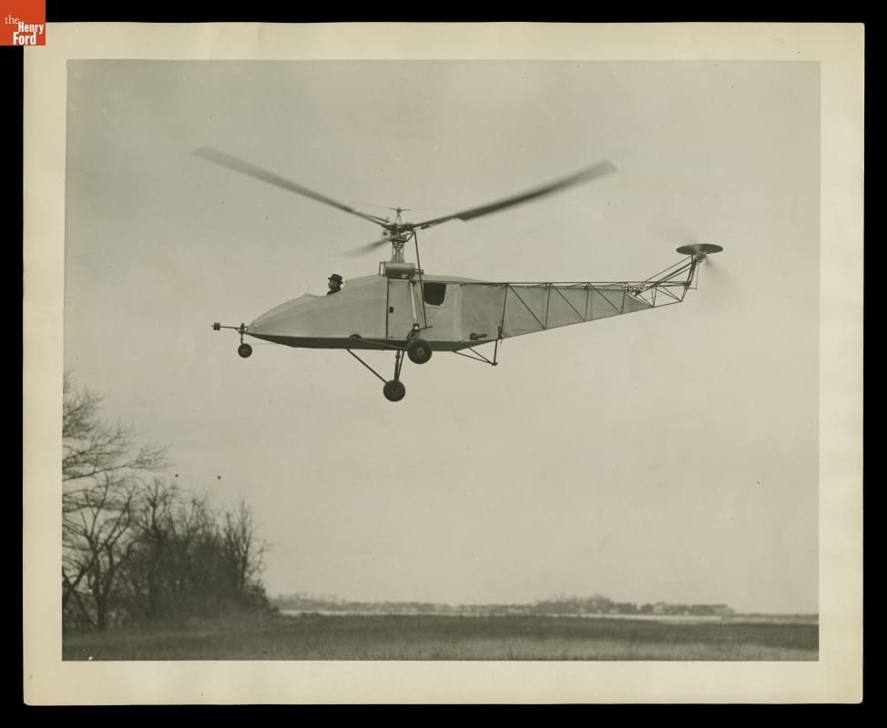 Russian-American inventor Igor Sikorsky first experimented with helicopters in 1909, but he soon realized that the technology of that time was insufficient. He moved to fixed-wing craft and built the first four-engine airplane in 1913. Sikorsky returned to helicopters in 1939 with the successful VS-300. After further refinements, Sikorsky donated the helicopter to The Henry Ford in 1943.
