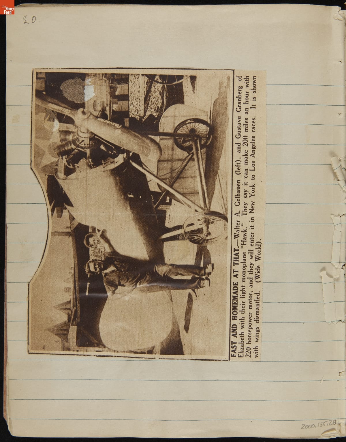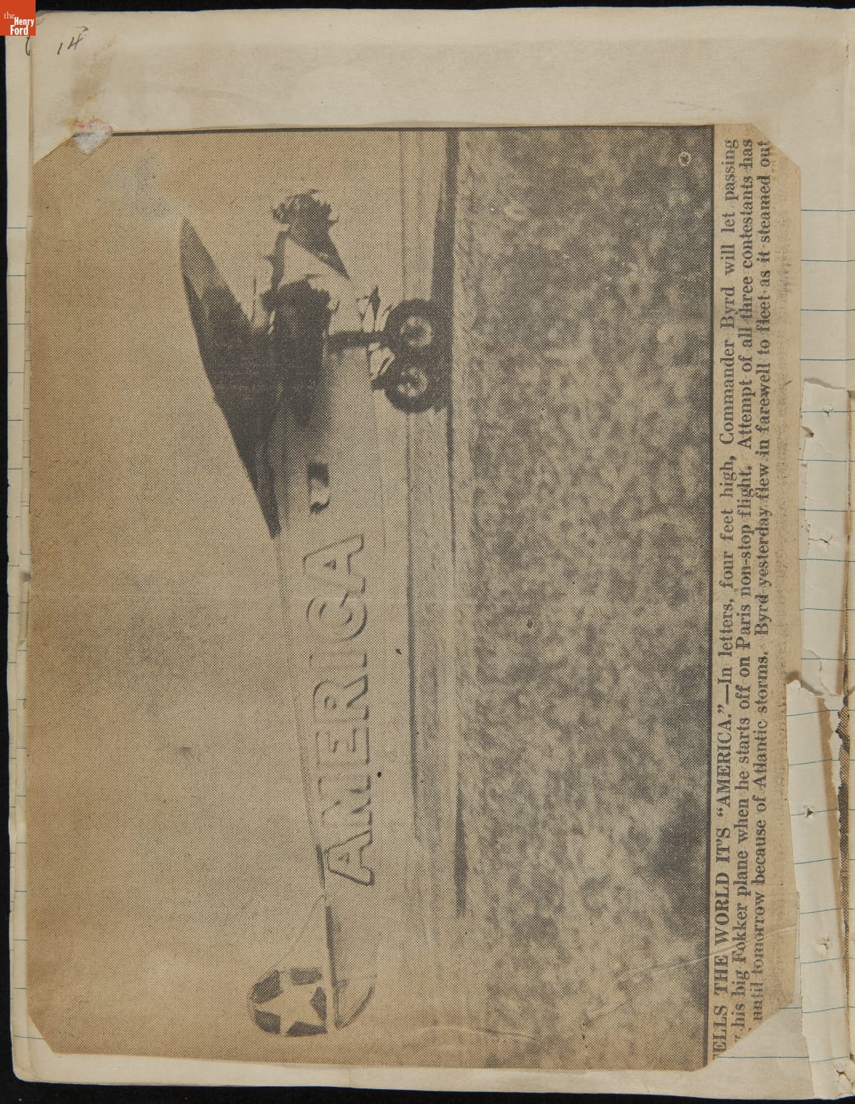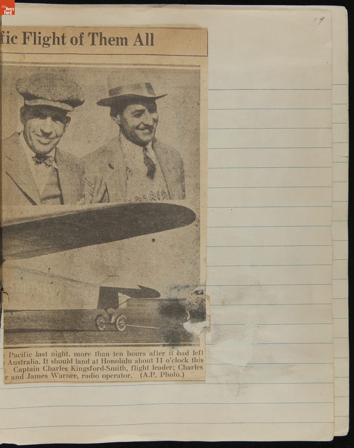 Kenneth Henderson compiled this scrapbook around 1928. It included photographs and newspaper clippings related to some of the top pilots and airplanes of the day. William Brock, Richard Byrd, Anthony Fokker, Charles Lindbergh, and Edward Schlee were among the aviators Henderson documented.