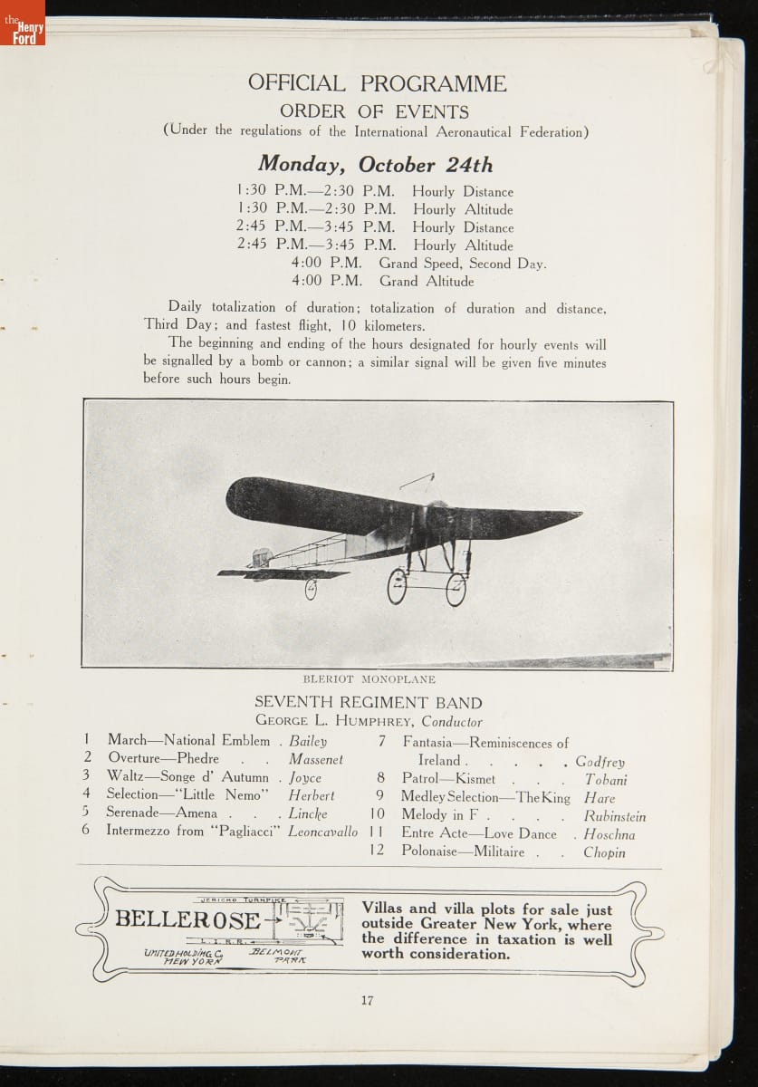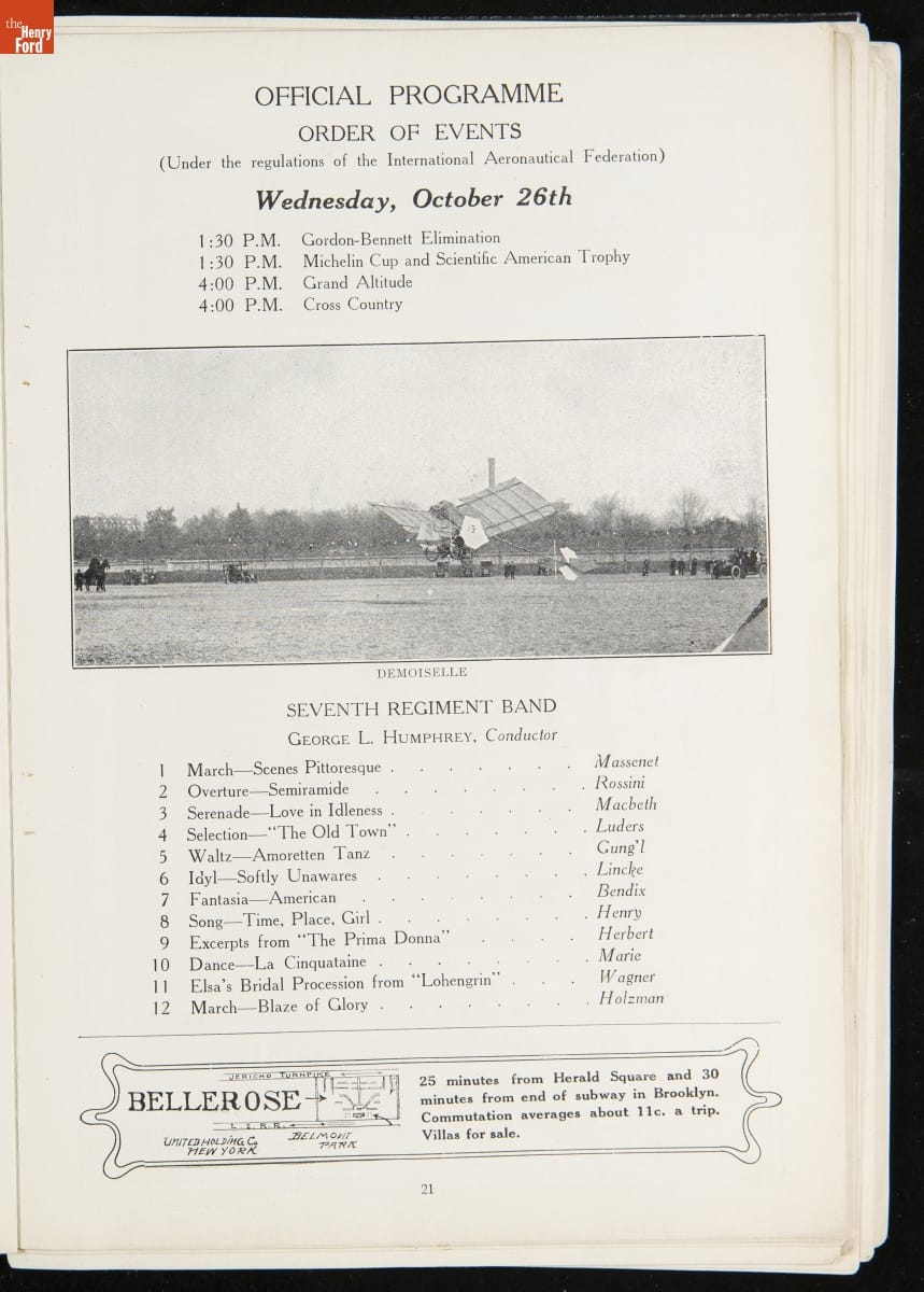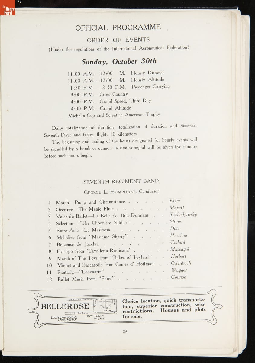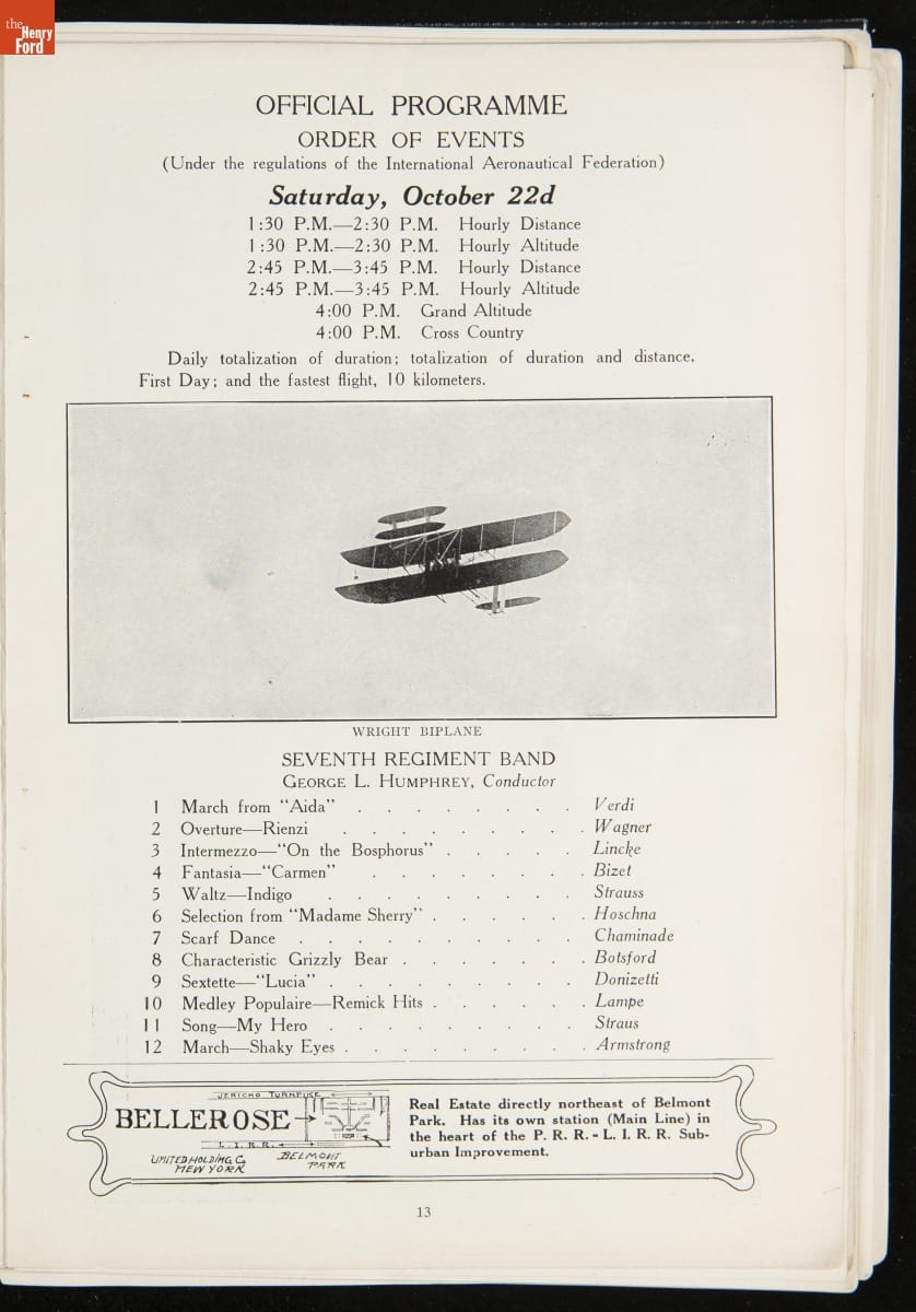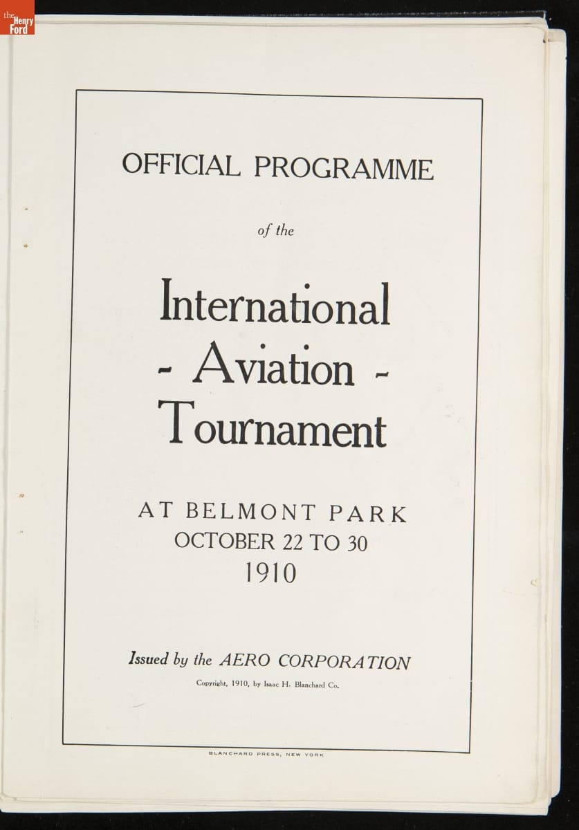 Official Programme of the International Aviation Tournament at Belmont Park, October 22 to 30, 1910