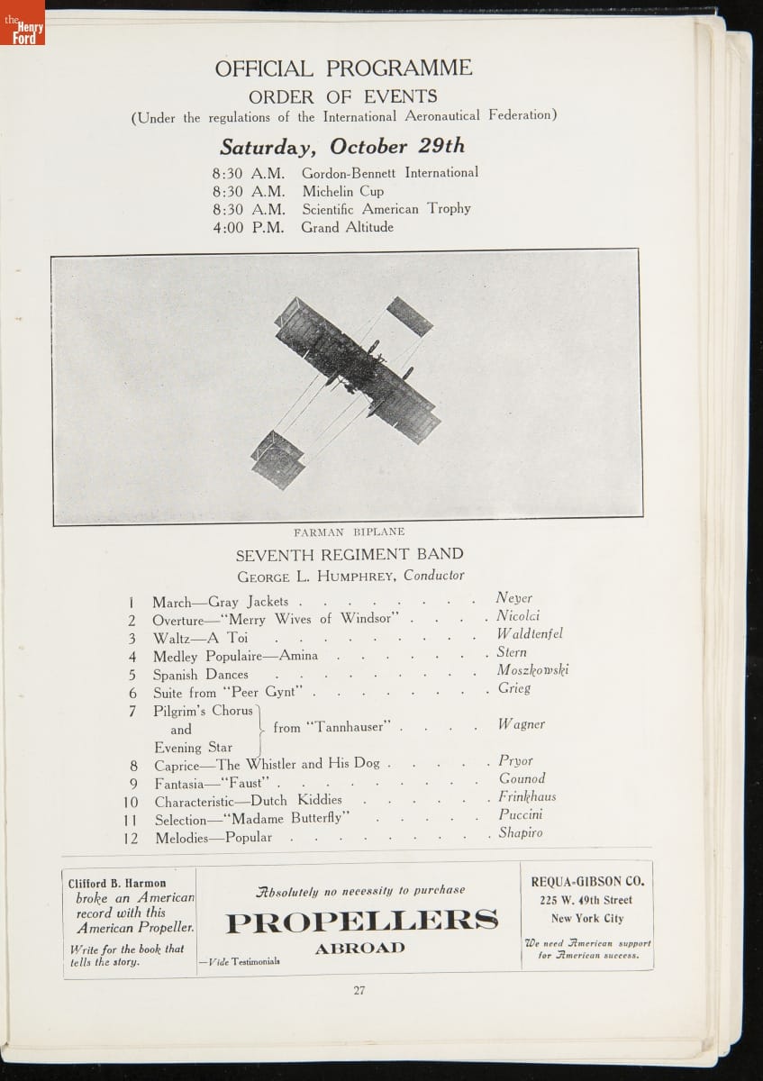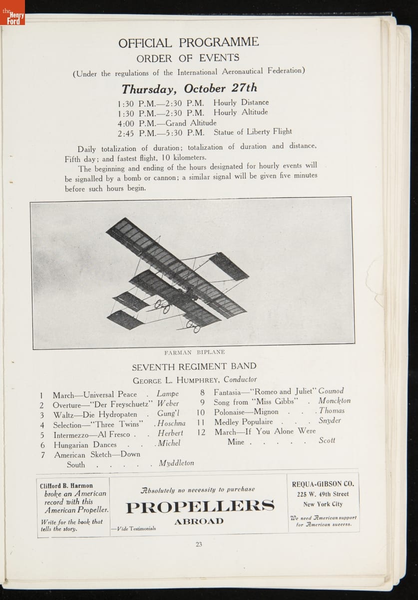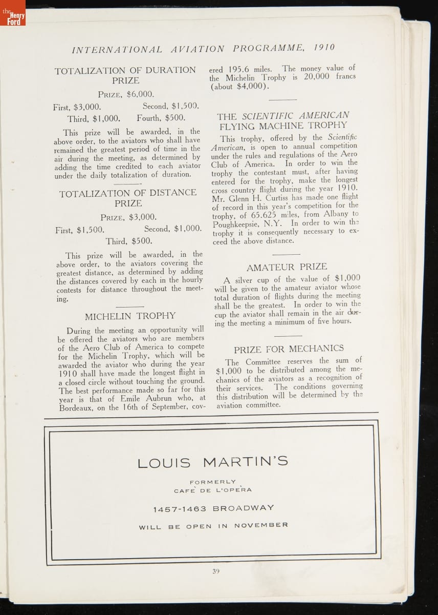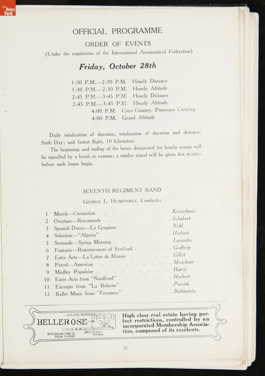 Official Programme of the International Aviation Tournament at Belmont Park, October 22 to 30, 1910