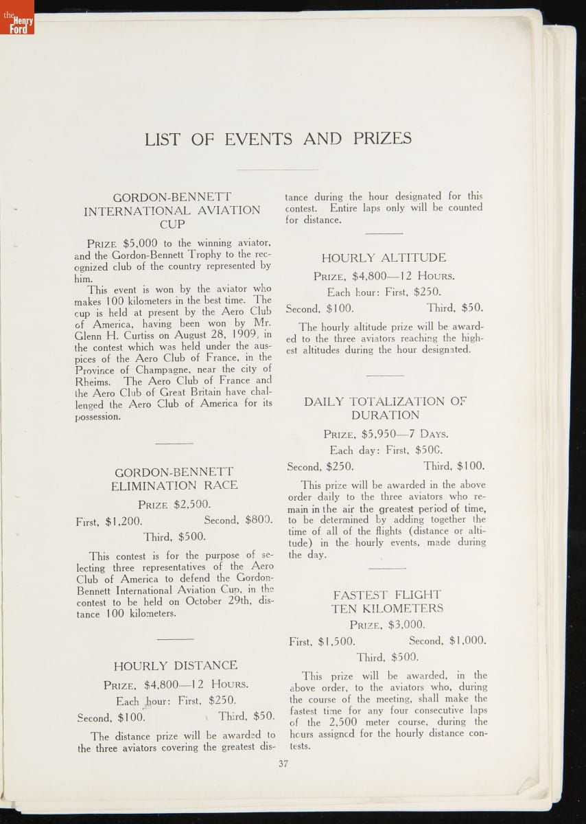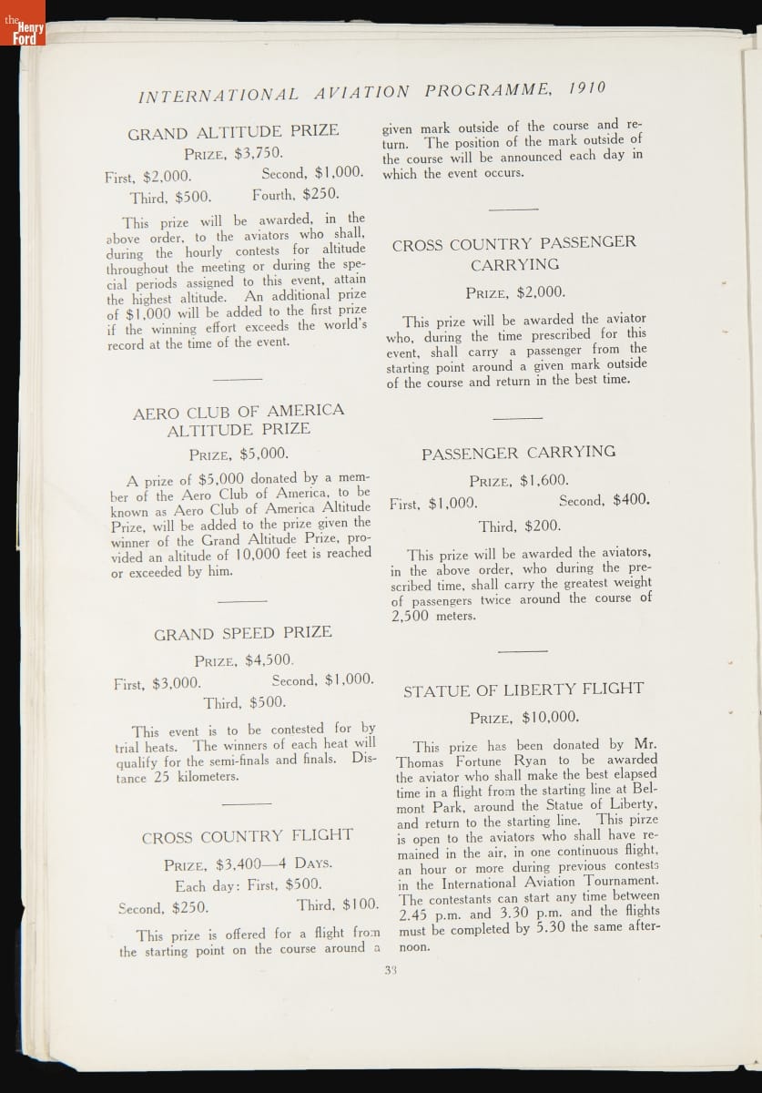 The 1910 International Aviation Tournament at Belmont Park, on New York's Long Island, attracted dozens of the world's best pilots with some $75,000 in prize money. The tournament included altitude contests, the Gordon Bennett speed race, and a round-trip run from Belmont Park to the Statue of Liberty. An estimated 75,000 spectators watched the start and finish of that final event.