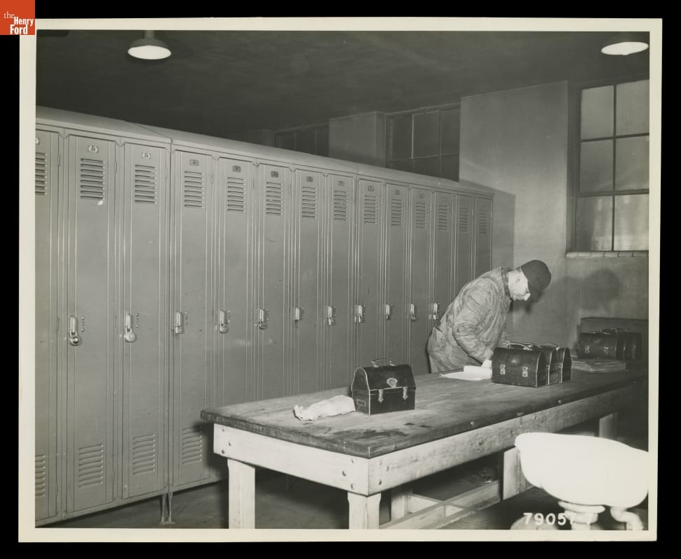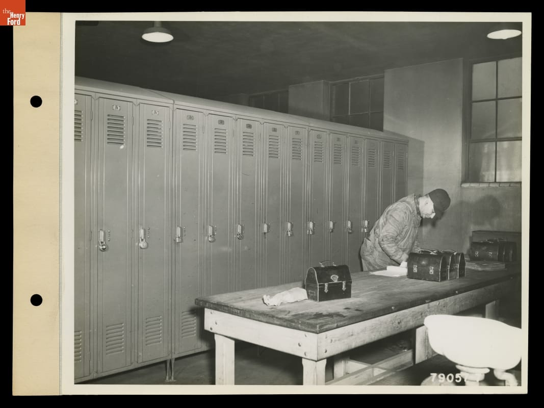 Lockers and Lunch Area inside the Detroit, Toledo & Ironton Railroad Roundhouse in Flat Rock, Michigan, 1943