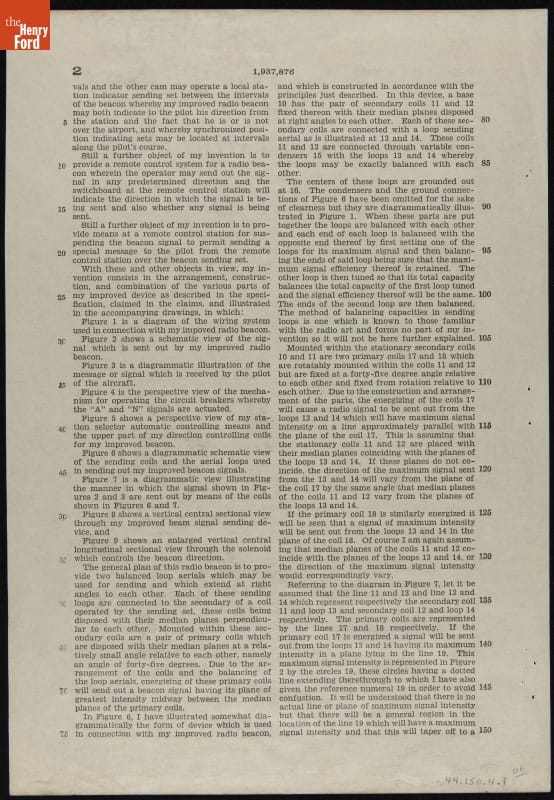 Radio Beacon Patent, #1,937,876, Granted December 5, 1933