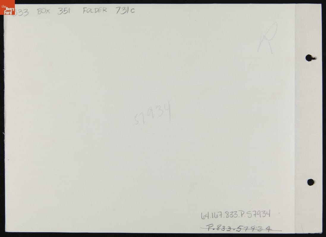 Original photographer unidentified. Copied September 14, 1933 by Ford Motor Company Photographic Department.