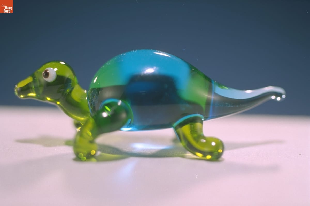 For visitors to the resort towns around Pentwater, Michigan, a trip to Henry Carter Johnson's "Glass Menagerie" was a cherished vacation ritual. For over forty years, beginning in 1952, Johnson heated colored glass rods and fashioned them into multicolored figures. His whimsical creatures captured the imaginations of children and adults who purchased them, providing a tangible reminder of an enjoyable Michigan summer.