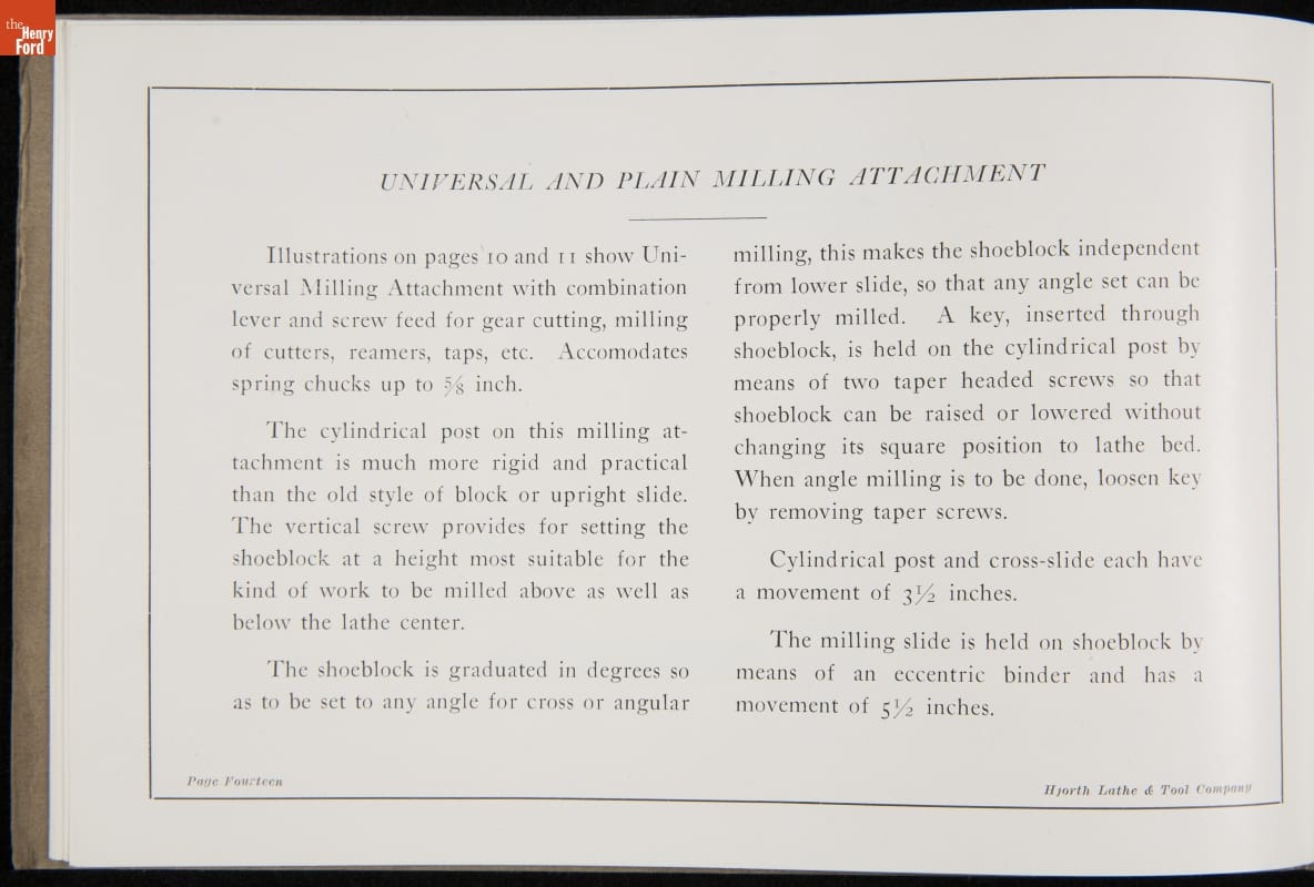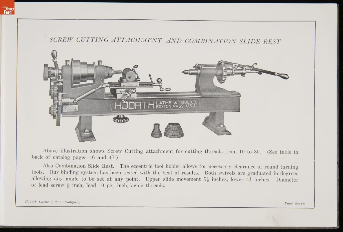 Hjorth Bench Lathe and Attachments Catalog No. 12, circa 1920