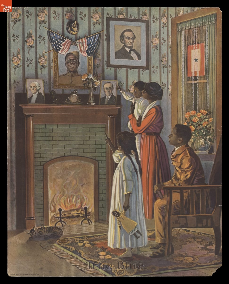 During World War I, Abraham Lincoln's image was revived as a symbol of wisdom, courage, and sacrifice both at home and abroad. Posters like this were certainly propaganda but they succeeded in motivating the American public to support the war effort. African Americans' loyalty to Lincoln inspired thousands to enlist and bravely serve their country--though largely in segregated units.