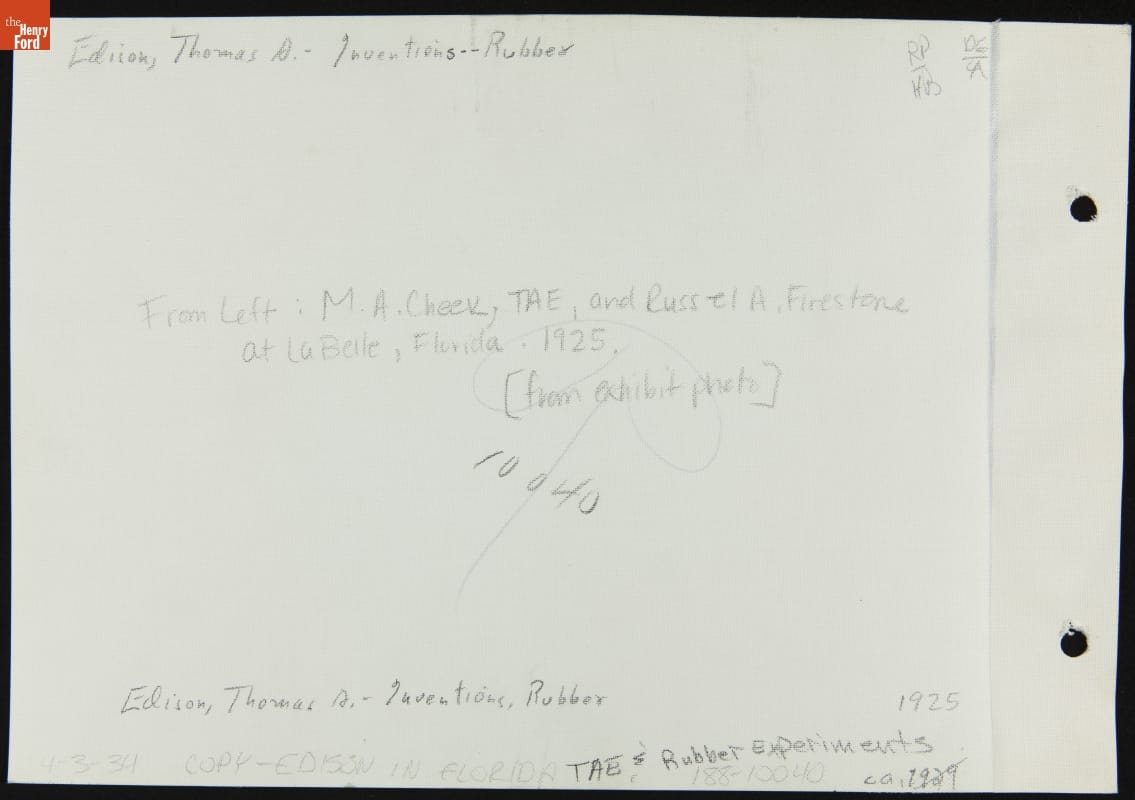 Thomas Edison with M. A. Cheek and Russell Firestone in La Belle, Florida, 1925