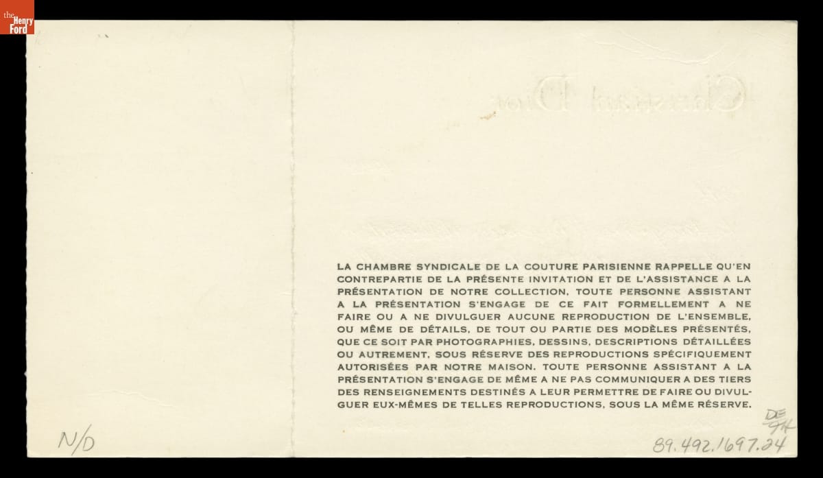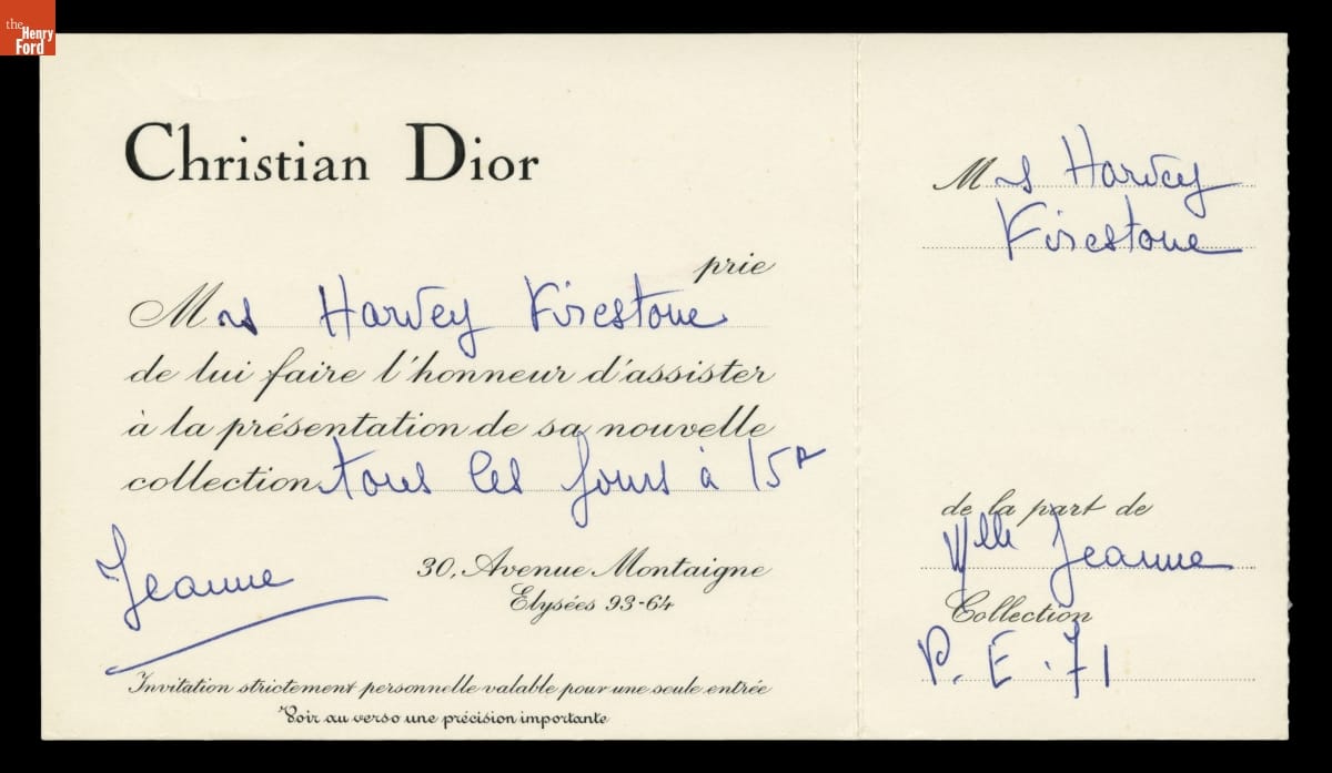 Elizabeth Parke Firestone's Invitation to See the Christian Dior Spring-Summer 1971 Collection