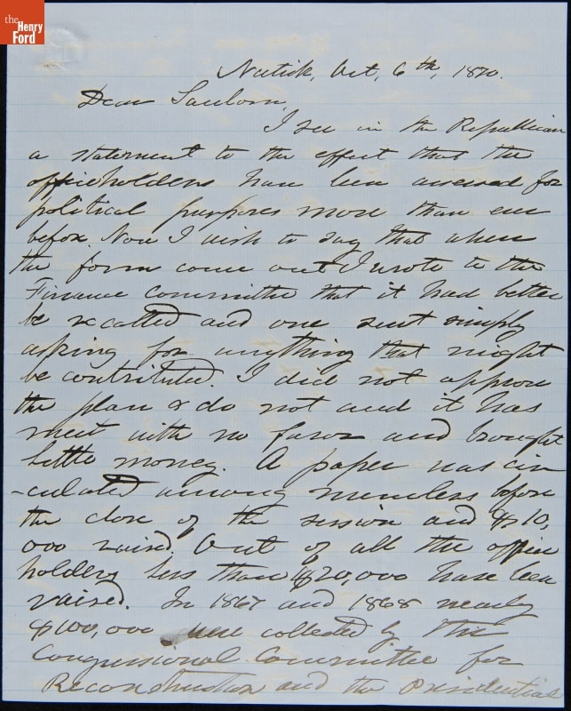 Letter from Henry Wilson to Sanborn, October 6, 1870