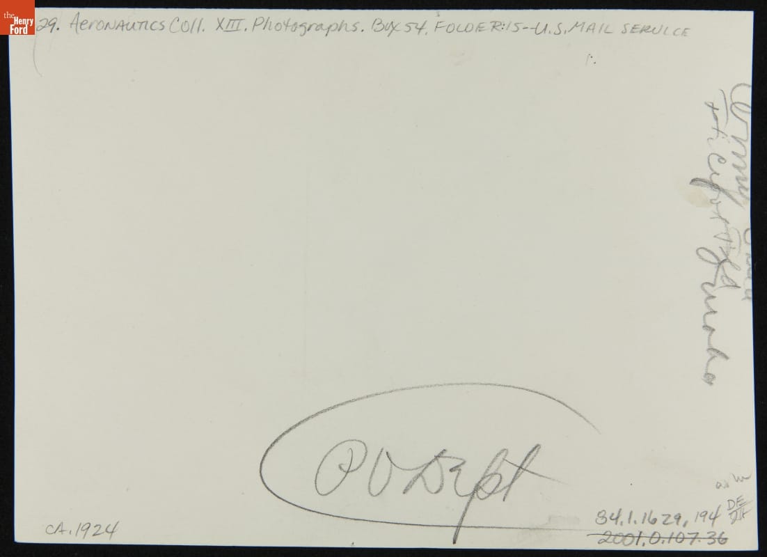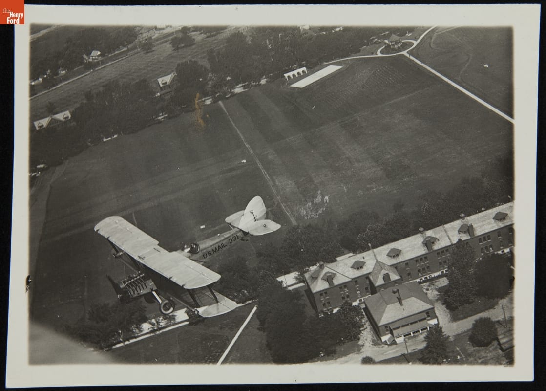 Aerial View of U.S. Air Mail Plane above Fort Crook, Nebraska, circa 1923