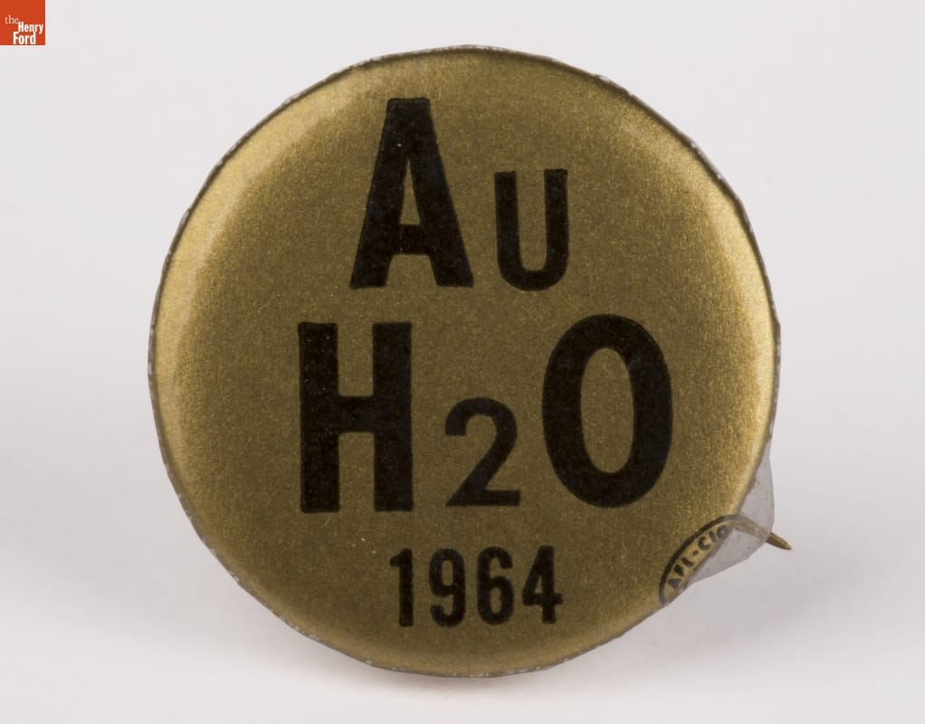 Arizona Senator Barry Goldwater ran for president in 1964. Some of his campaign pieces employed this scientific abbreviation to promote the candidacy. "Au" is the periodical table symbol for "gold" and H2O is the chemical formula for "water." Put them together and they form "Goldwater." It's clever--but he still lost in a landslide to incumbent President Lyndon Johnson.