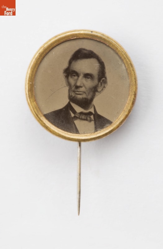 After a gloomy summer of Union defeats and casualty lists, President Lincoln's re-election hopes seemed slim. But, finally, several Union victories gave him the needed public support to win the 1864 election by a landslide. This unusual campaign stickpin holds a ferrotype (or tintype) portrait of Abraham Lincoln.