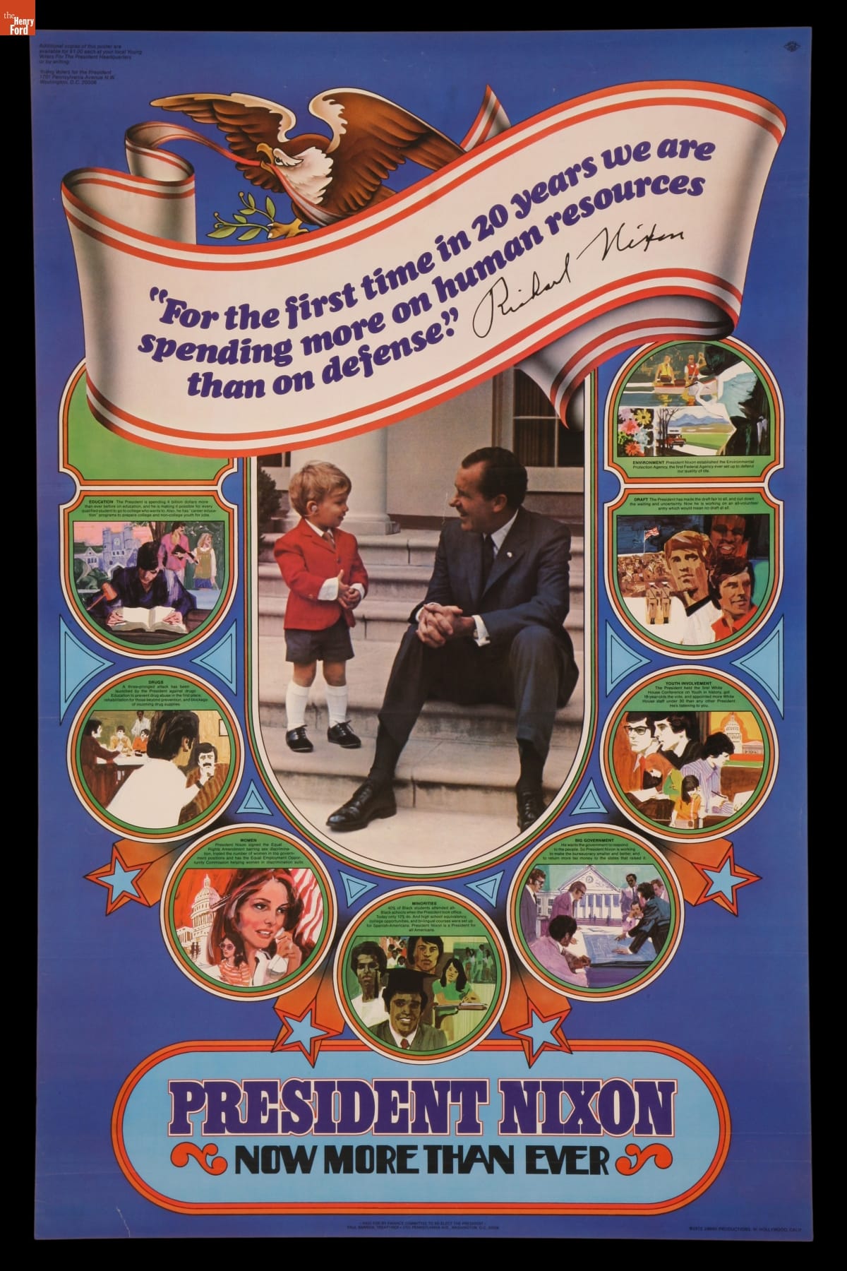 Printed at top: "For the first time in 20 years we are / spending more on human resources / than on defense" (signed) Richard Nixon