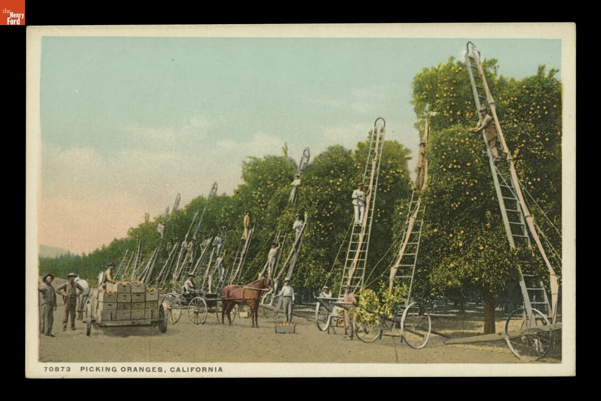 "Picking Oranges, California," circa 1912