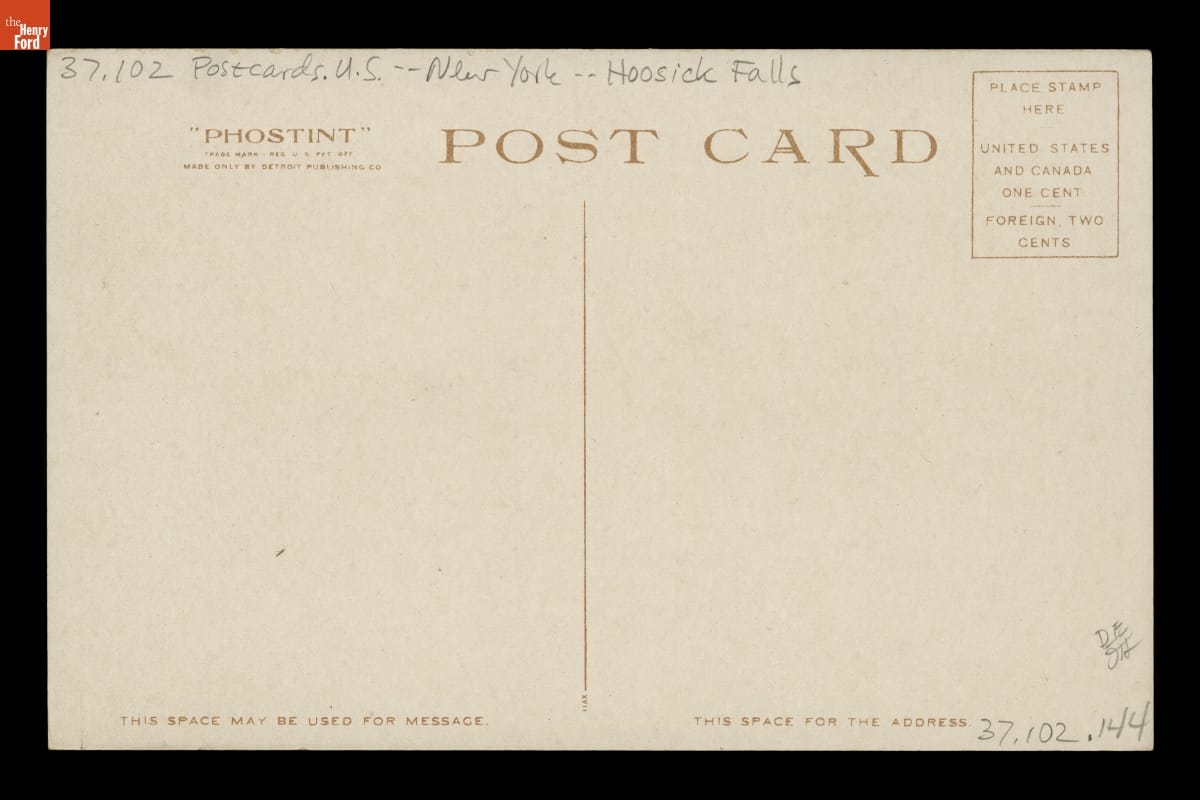 From 1895 to 1924, the Detroit Publishing Company was one of the major image publishers in the world. It had a wide-ranging stock of original photographs, many of which were colored using the company's patented "Phostint" process. Popular "Phostint" postcards, the Detroit Publishing Company claimed, were delicately "executed in Nature's Coloring" to be truthful, tasteful, beautiful, and educational.