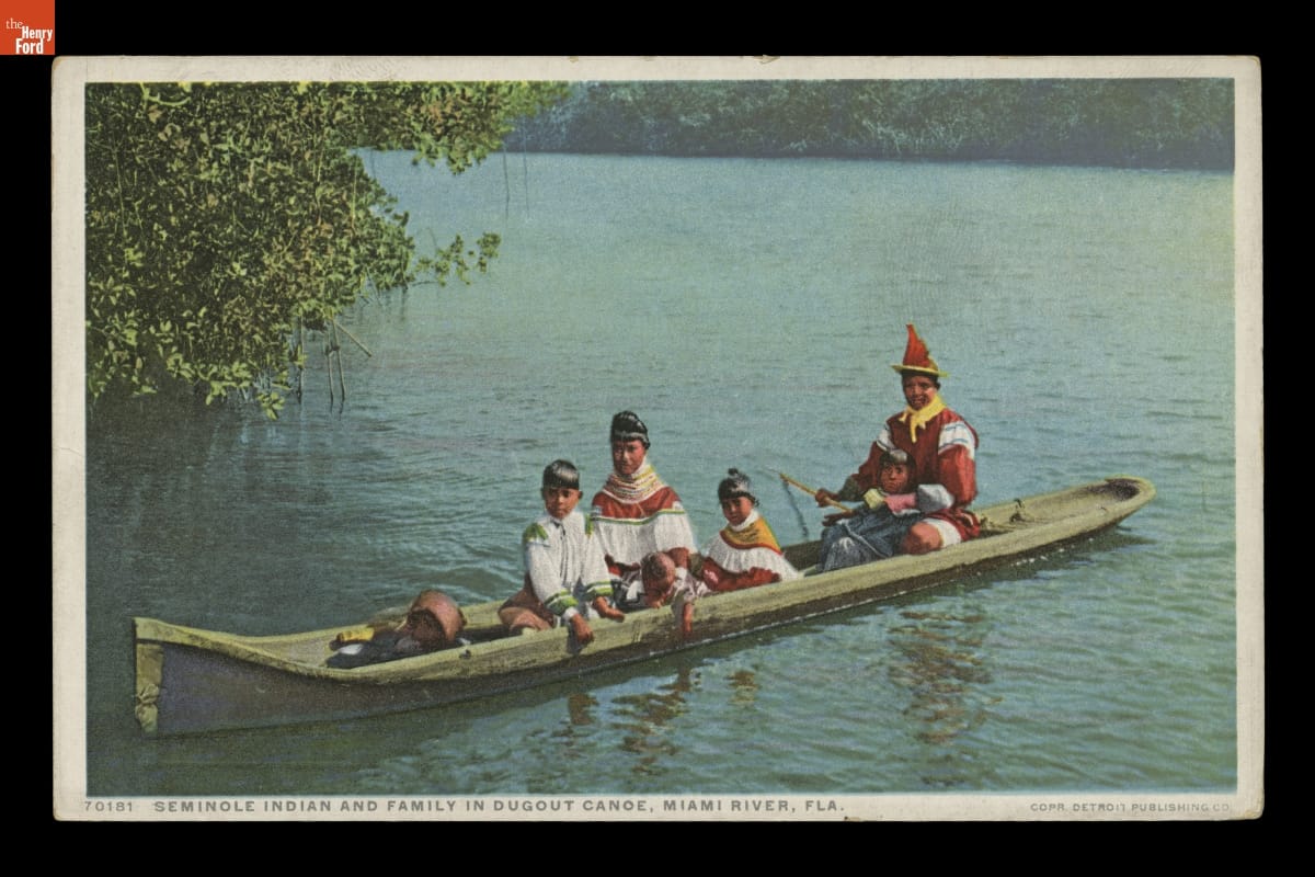 "Seminole Indian Family in Dugout Canoe, Miami River, Florida," circa 1911