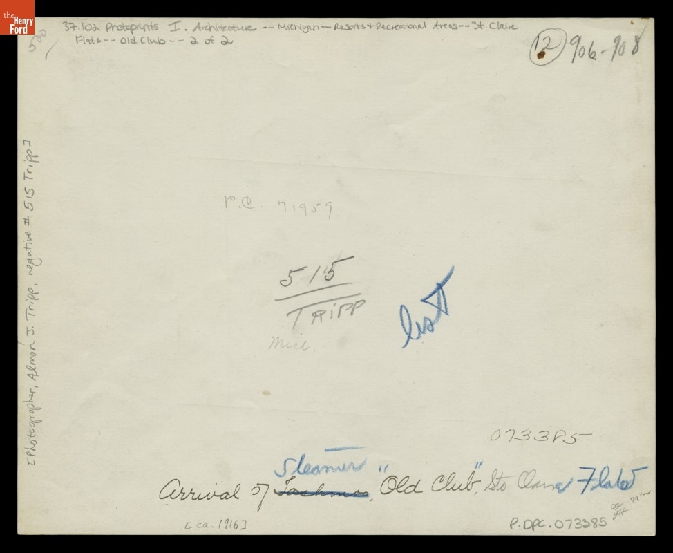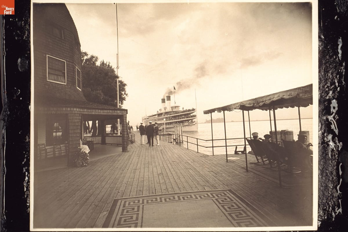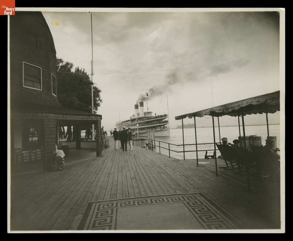 Arrival of Steamer 'Tashmoo' at The Old Club, St. Clair Flats, Michigan, circa 1916
