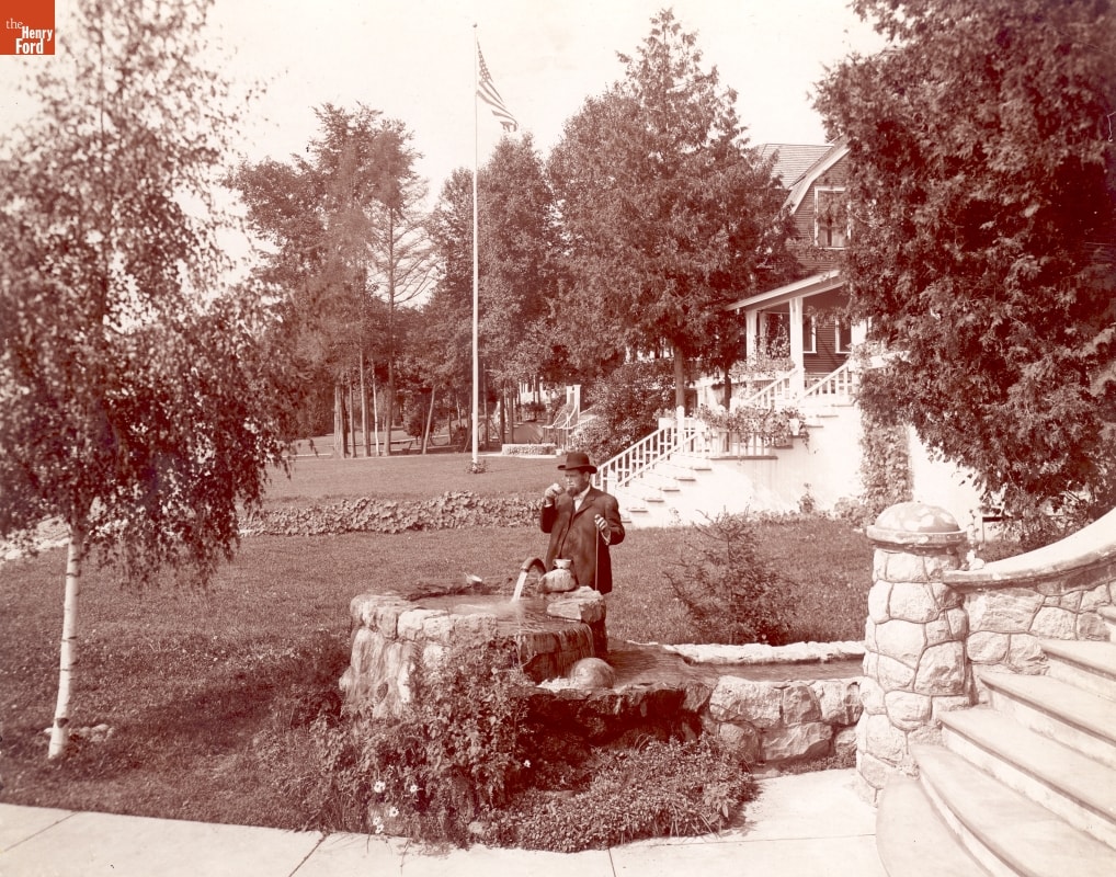 Man Drinking from Flowing Well, Wequetonsing, Michigan, circa 1906