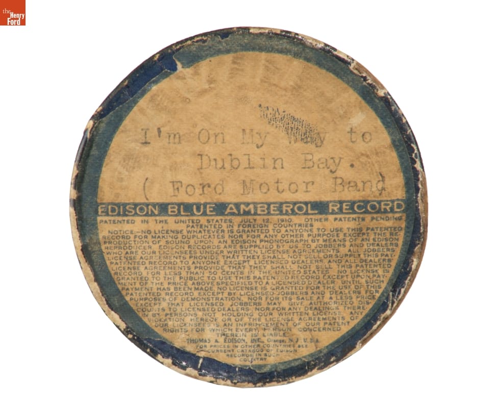 Performance by the Ford Motor Band; cylinder manufactured by Thomas A. Edison, Inc., Orange, New Jersey.