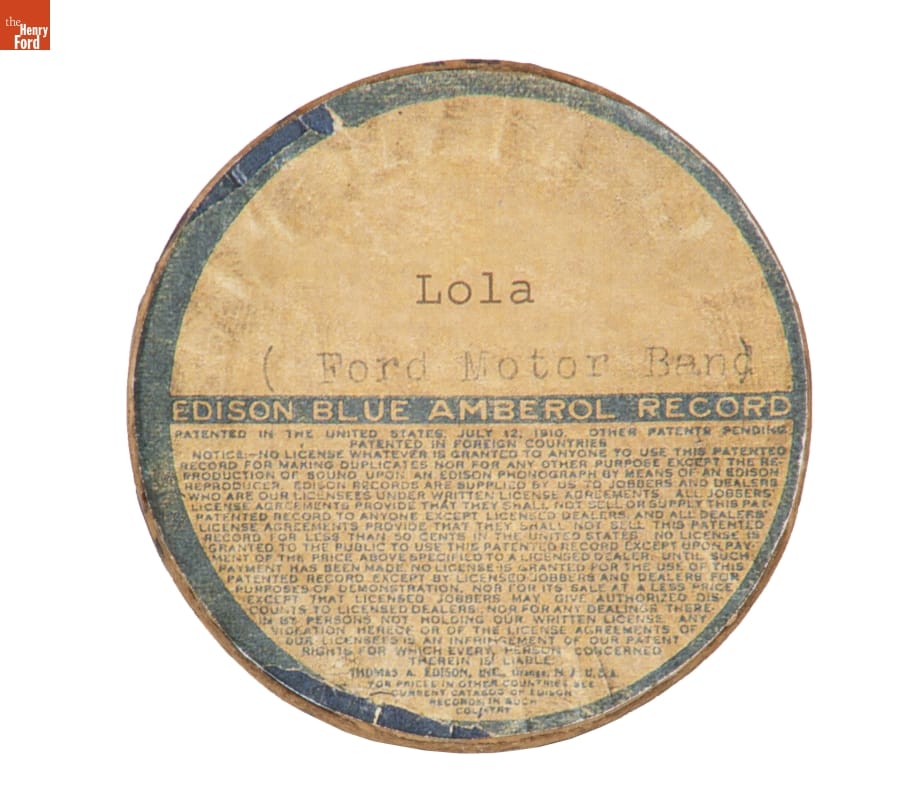 Performance by the Ford Motor Band; cylinder manufactured by Thomas A. Edison, Inc., Orange, New Jersey.