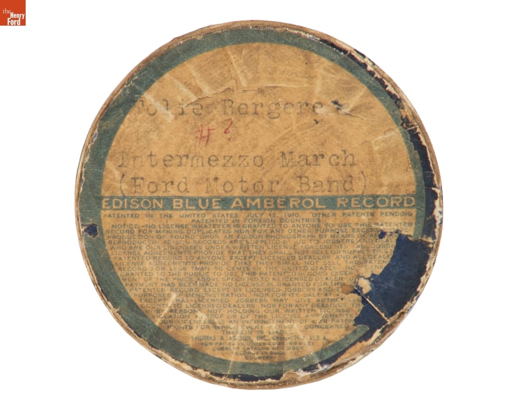 Performance by the Ford Motor Band; cylinder manufactured by Thomas A. Edison, Inc., Orange, New Jersey.