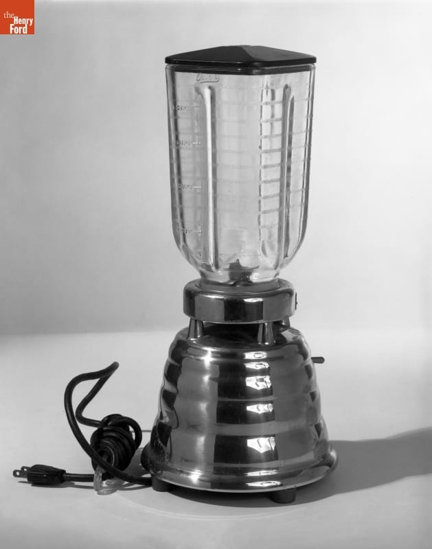 Industrial designers responded to post World War II consumer demand for affordable, aesthetically appealing goods. The Osterizer blender, which debuted in 1946, sported rounded edges and horizontal lines of streamlining design, a modern look popular since the 1930s--one suited to mass production. Rectilinear and angled features gained popularity in the mid-1950s, yet this blender held appeal for many years. A design with staying power.