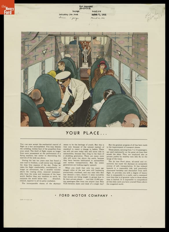 Advertisement Promoting Commercial Flight in Ford Tri-Motor Airplanes, "Your Place...," March 1931