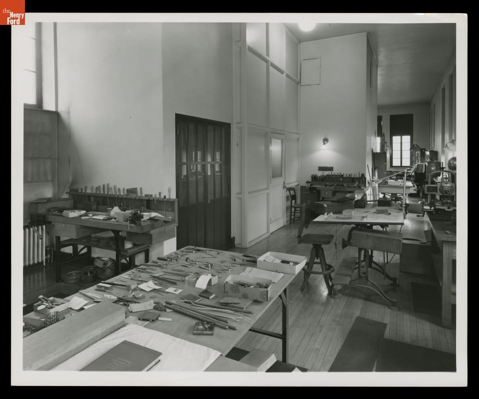 Workshop inside the Powerhouse at Fair Lane, 1951