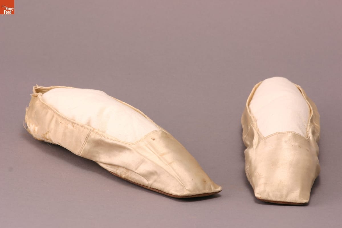 Ladies in early-nineteenth-century America wore delicate slippers with their stylish dresses. While fashionable, these types of shoes were notoriously unhealthy: they quickly became damp and soiled, provided no foot support, and were occasionally purchased a size or two too small so that the wearer's foot appeared dainty. These slippers were all about looking great -- not being comfortable.