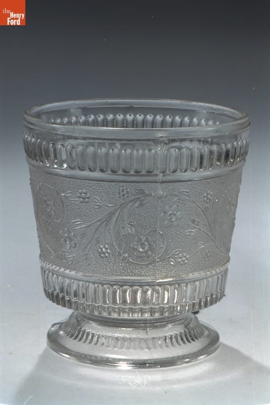 Nineteenth-century American glassmakers experimented with new methods to create products for a growing consumer market. In the 1820s, pressing glass into metal molds by machine was perfected, and by the mid-1800s, manufacturers were creating a variety of inexpensive pressed glass housewares. America's middle-class consumers could now decorate their homes with attractive glass bowls, creamers, dishes, plates, vases, and other tableware.