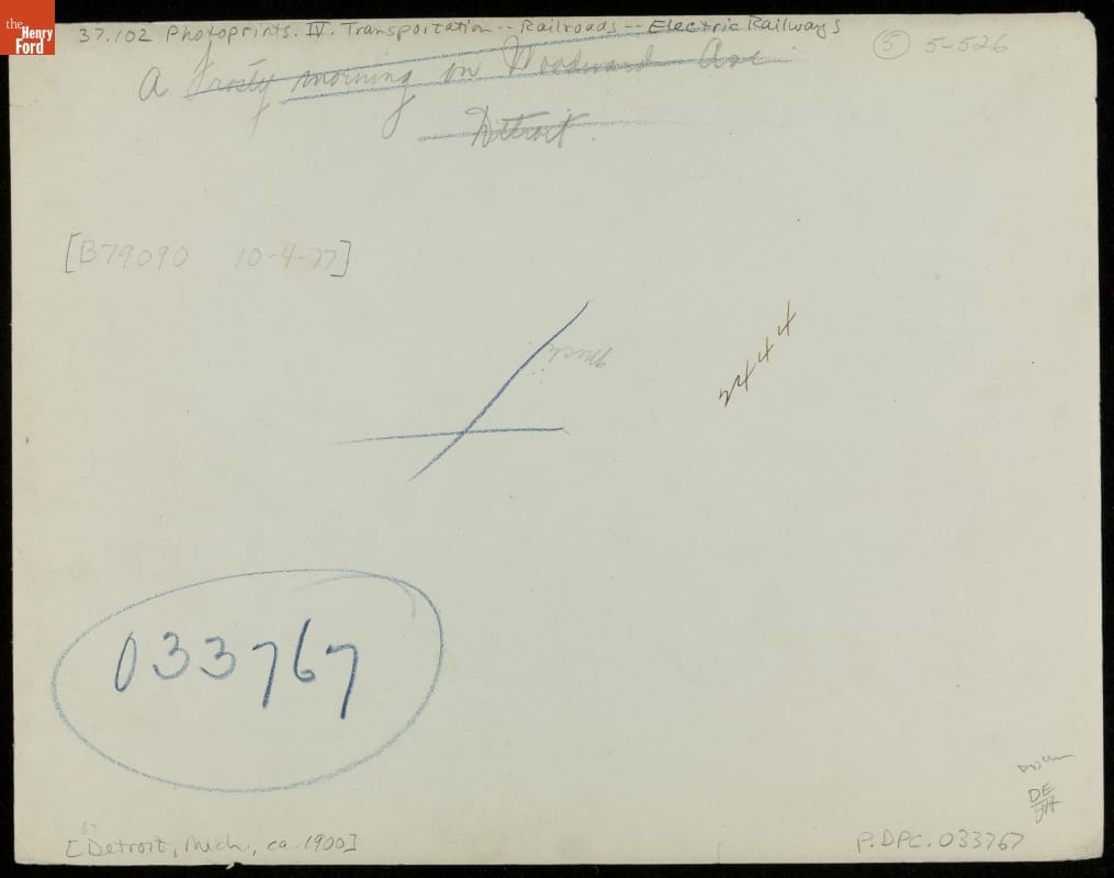 On verso, handwritten in pencil (at a later date, 1977): [in square brackets] -[B79090 10-4-77] [Detroit, Mich., ca. 1900]