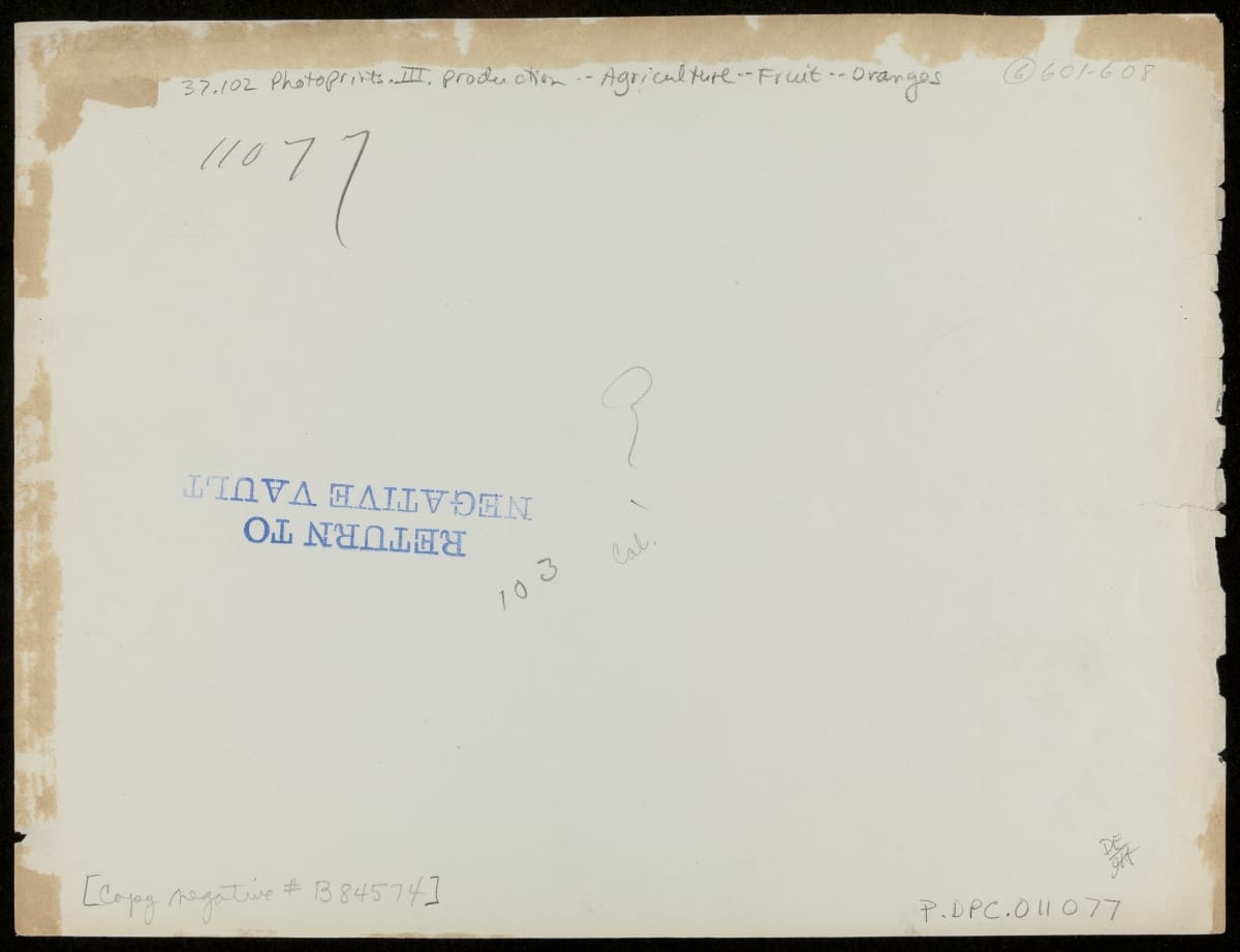 For nearly thirty years, 1895 to 1924, the Detroit Publishing Company was one of the major image publishers in the world. The company had a wide-ranging stock of original photographs, including many scenes from across North America. Here, workers in California pack lemons and oranges for shipping.