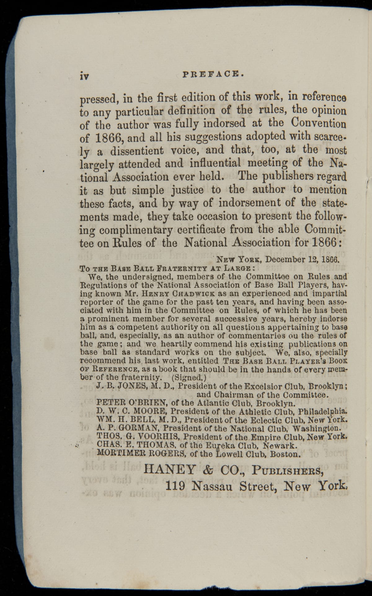 Authored by Henry Chadwick. Published by J.C. Haney & Co., New York, New York.