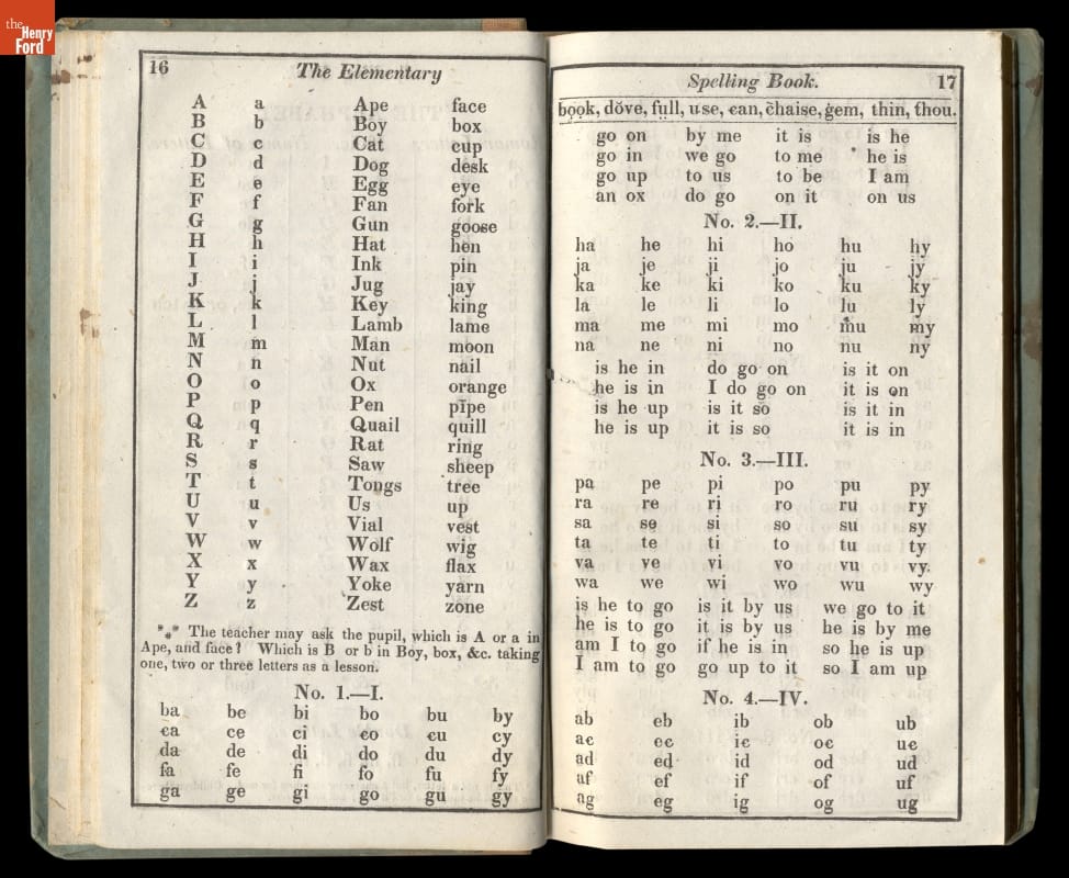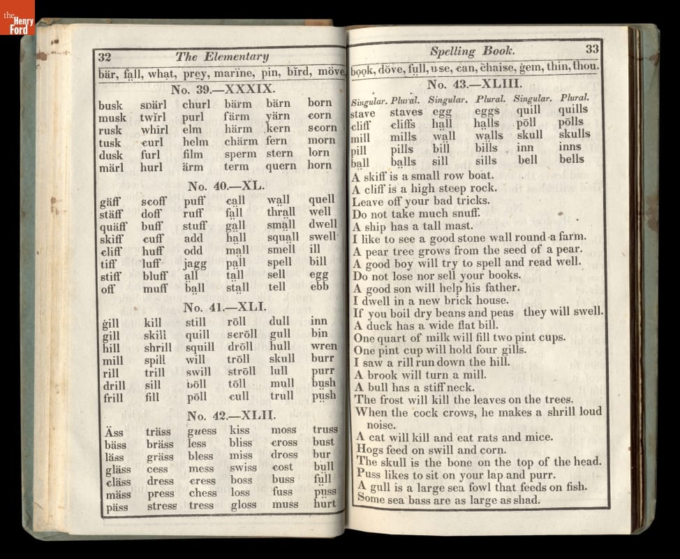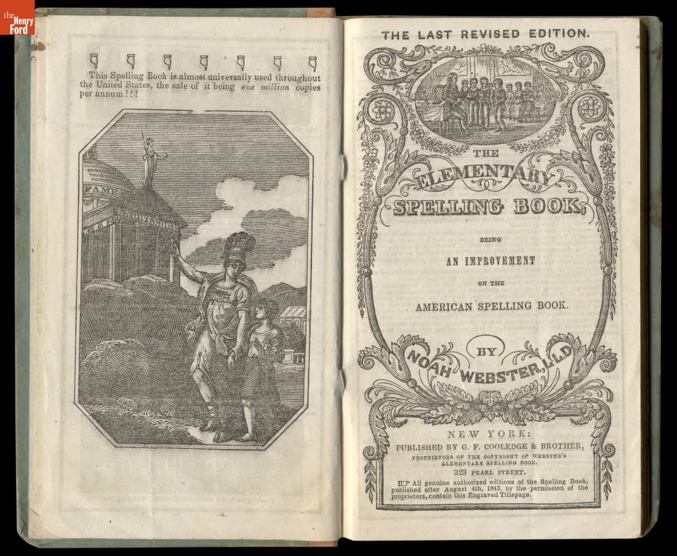 Noah Webster's speller offered simple guidelines for spelling and pronouncing American English words. Age-appropriate lessons taught schoolchildren to read and write, helping to define and unify American language. Known by its colored cover, Webster's "blue-backed speller" remained popular for more than 100 years. It sold so well that Webster was able to construct his New Haven, Connecticut, home using the proceeds.