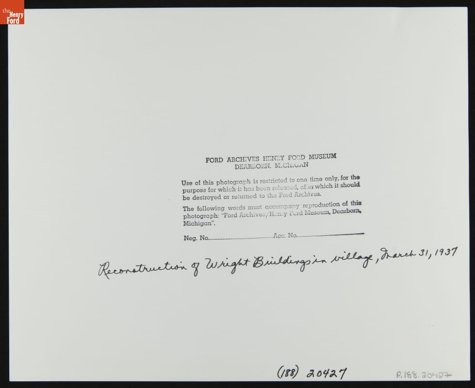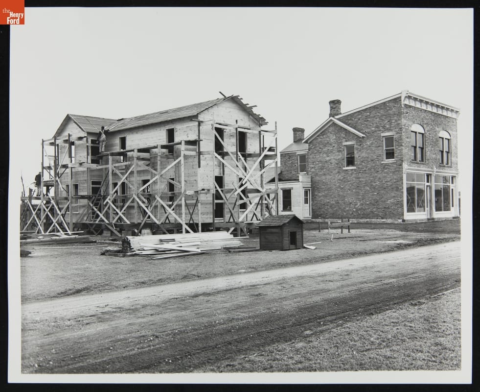 Henry Ford relocated the Wright brothers' home and cycle shop from Dayton, Ohio, to Greenfield Village. While the buildings sat a few blocks apart in Dayton, Ford placed them side-by-side at his Dearborn, Michigan, museum complex. Orville Wright and Charlie Taylor, the mechanic who built the engine for the 1903 Wright Flyer, assisted to ensure the project's accuracy.