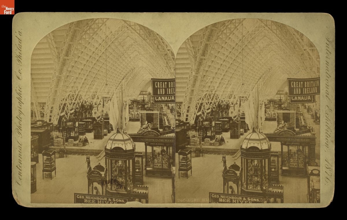 Americans loved stereographs -- millions were made from the mid-1800s through the 1930s. A stereograph consists of two offset photos that appear to have three-dimensional depth when viewed through a stereoscope. These images entertained and educated. Stereographs could transport viewers to faraway places and distant events, like this view of the 1876 Centennial Exhibition in Philadelphia, Pennsylvania.