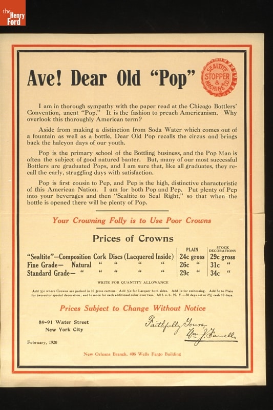 Advertising for Sealtitle Bottle Stoppers, February, 1920, "Ave! Dear Old 'Pop'"