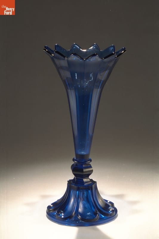 Nineteenth-century American glassmakers experimented with new methods to create products for a growing consumer market. In the 1820s, pressing glass into metal molds by machine was perfected, and by the mid-1800s, manufacturers were creating a variety of inexpensive pressed glass housewares. America's middle-class consumers could now decorate their homes with attractive glass bowls, creamers, dishes, plates, vases, and other tableware.