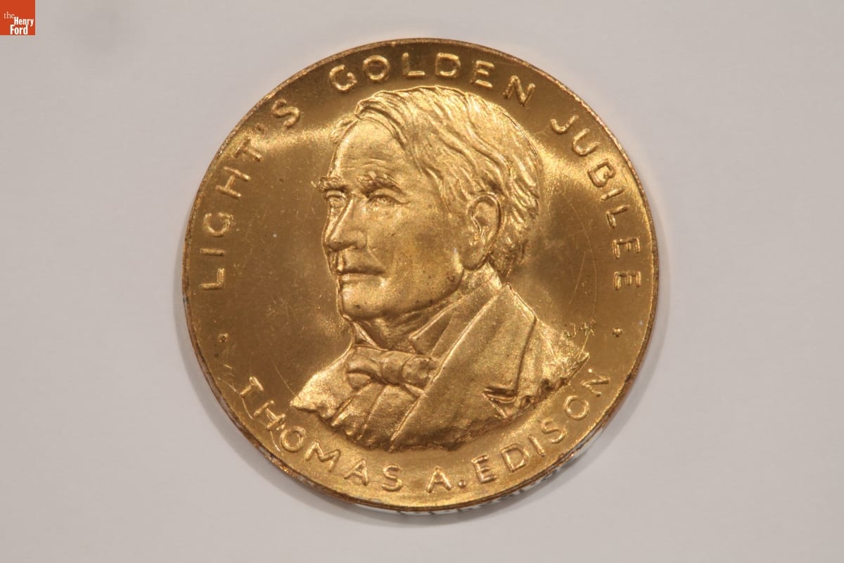In 1929, communities throughout the United States celebrated the 50th anniversary of the incandescent electric lamp and honored its creator, Thomas Alva Edison. Organizers planned Light's Golden Jubilee events and issued commemorative souvenirs, like this medallion designed by artist Julio Kilenyi.